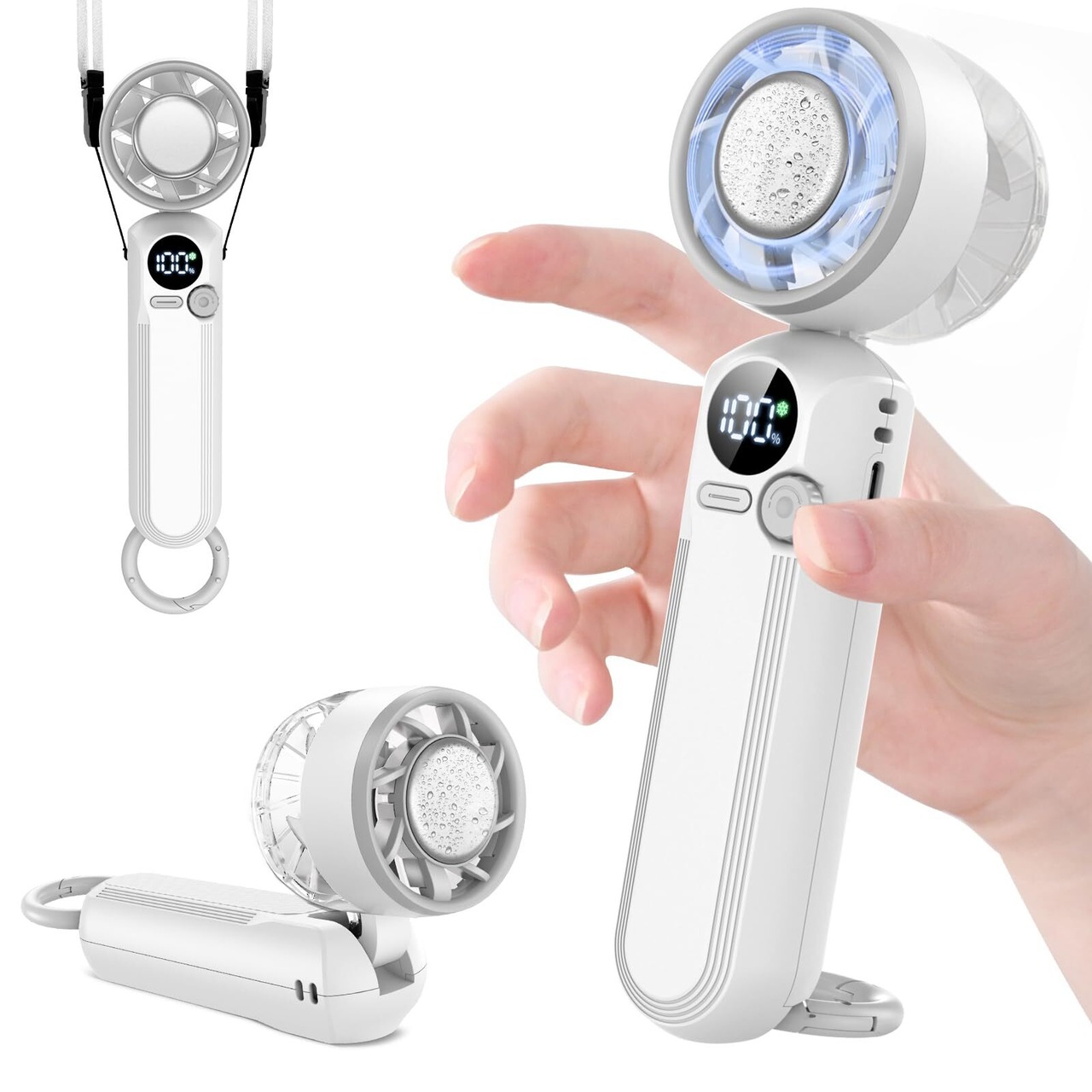 YOIIYO ハンディファン 冷却プレート付き 1秒冷感 100段階パワフル風量 首掛け/卓上/手持ち/腰掛け カラビナとストラップ付き 最長12h稼働 超軽量160g 携帯扇風機 小型 静音20dB 2h急速充電 手持ち扇風機 小型扇風機 熱中症対策