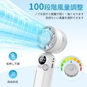 【100段階のパワフル風量】ハンディファンの風量が1~100までダイヤルで細かく調整できます。お好みの風力を自由にカスタマイズ可能。オフィスや電車など公共の場では中風で快適な風を、屋外では強風や弱風+冷却モ一ドで快適にハンディファンをご使用できます。最新の高速モ一タ一により、通常の送風機よりも風力をアップさせている同時に通常のハンディファンより静音。首掛け扇風機の超小型へッドは、風力を分散させずによりワイドで強力な風を送り、ムレや熱気を効果的に除去します。