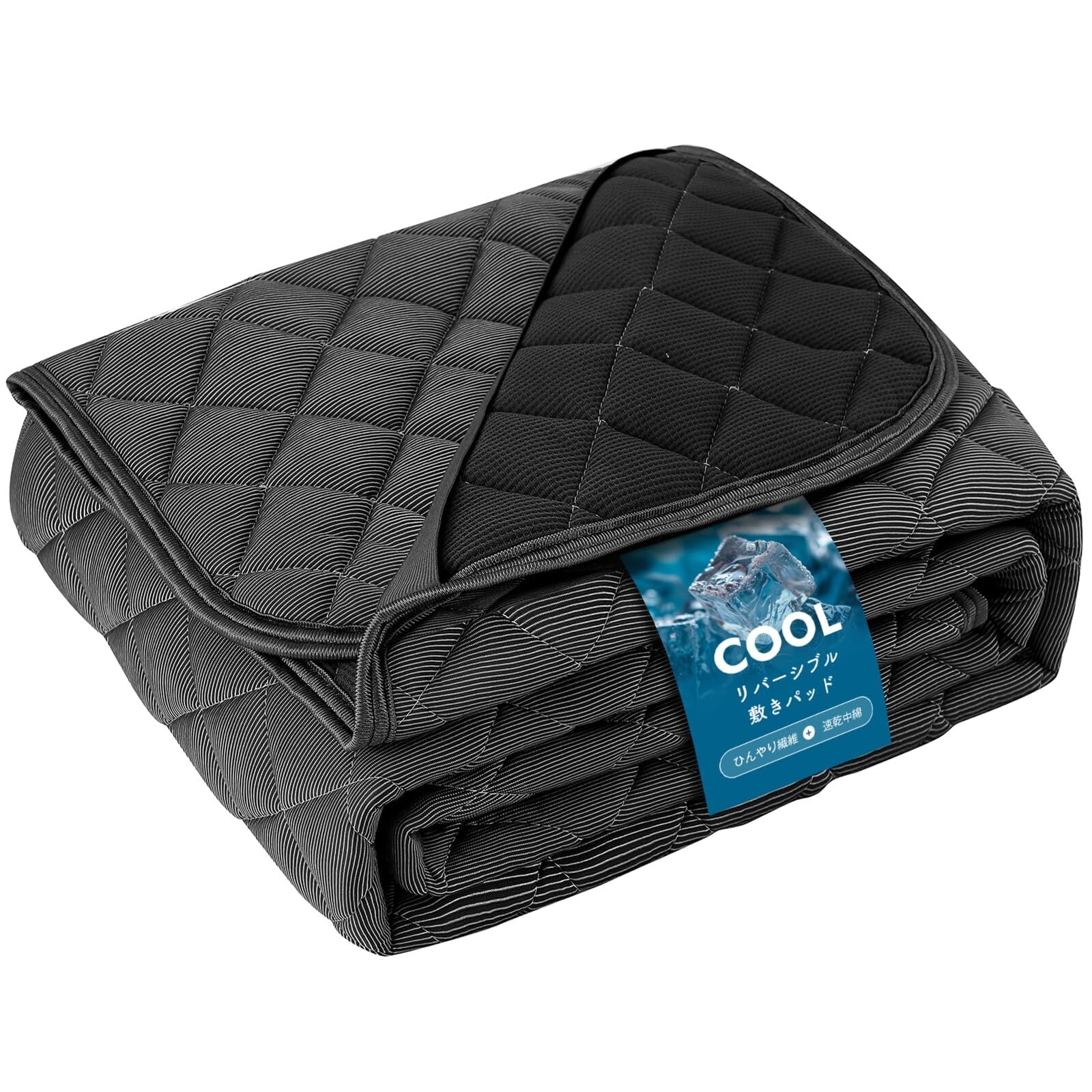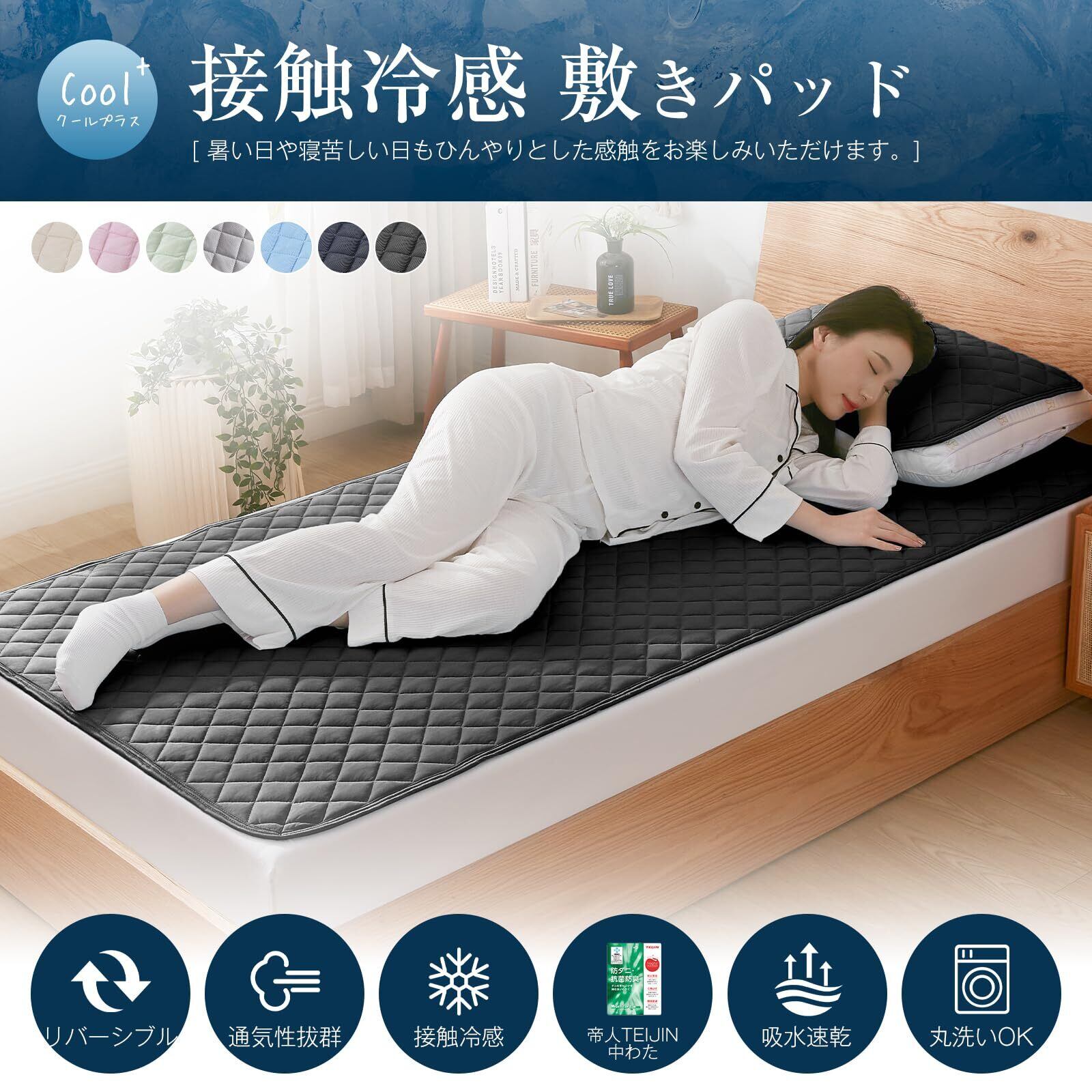 Matdeco 敷きパッド シングル 夏 冷感 リバーシブル 洗える 冷感 敷パッド ひんやりマット 冷感 マット シーツ 夏用 ベッドパッド 帝人マイティトップII使用 防ダニ 抗菌防臭 吸湿速乾 ふわふわ 四隅にゴム付き オールシーズンで使える 涼感 冷たい クール(100×200cm ブラック)