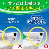 ●1回ごとの使い切りで、お掃除が終わったらそのままトイレに流せるから、いつでも清潔!ブラシはワンタッチでカンタン着脱。