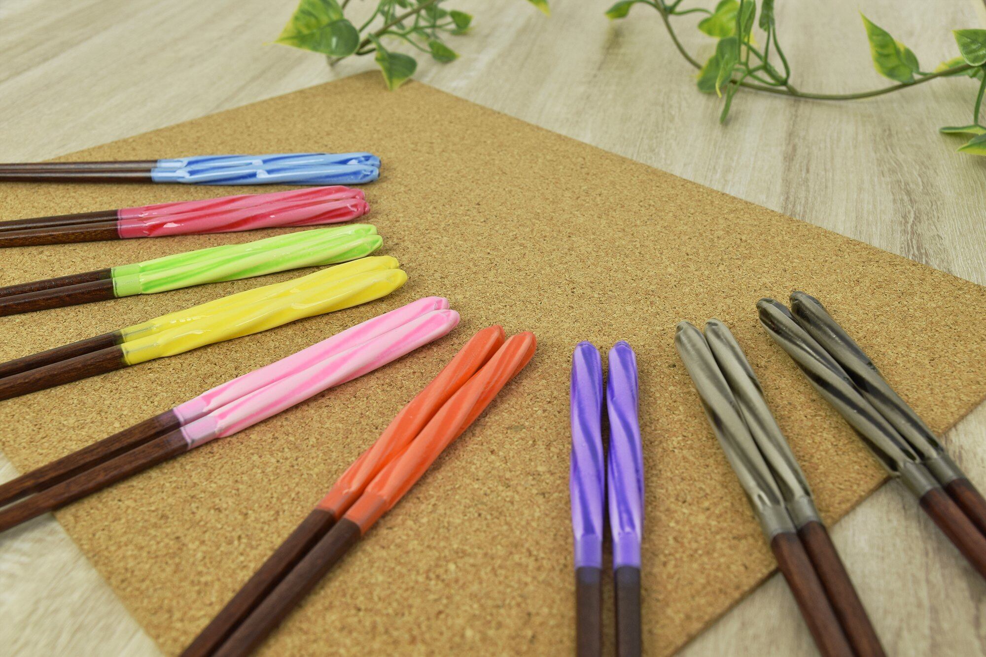 持ち手の下から箸先は馴染みのある天然木で、箸先が細くはさみやすい。和ごころと遊び心がつまったお箸。