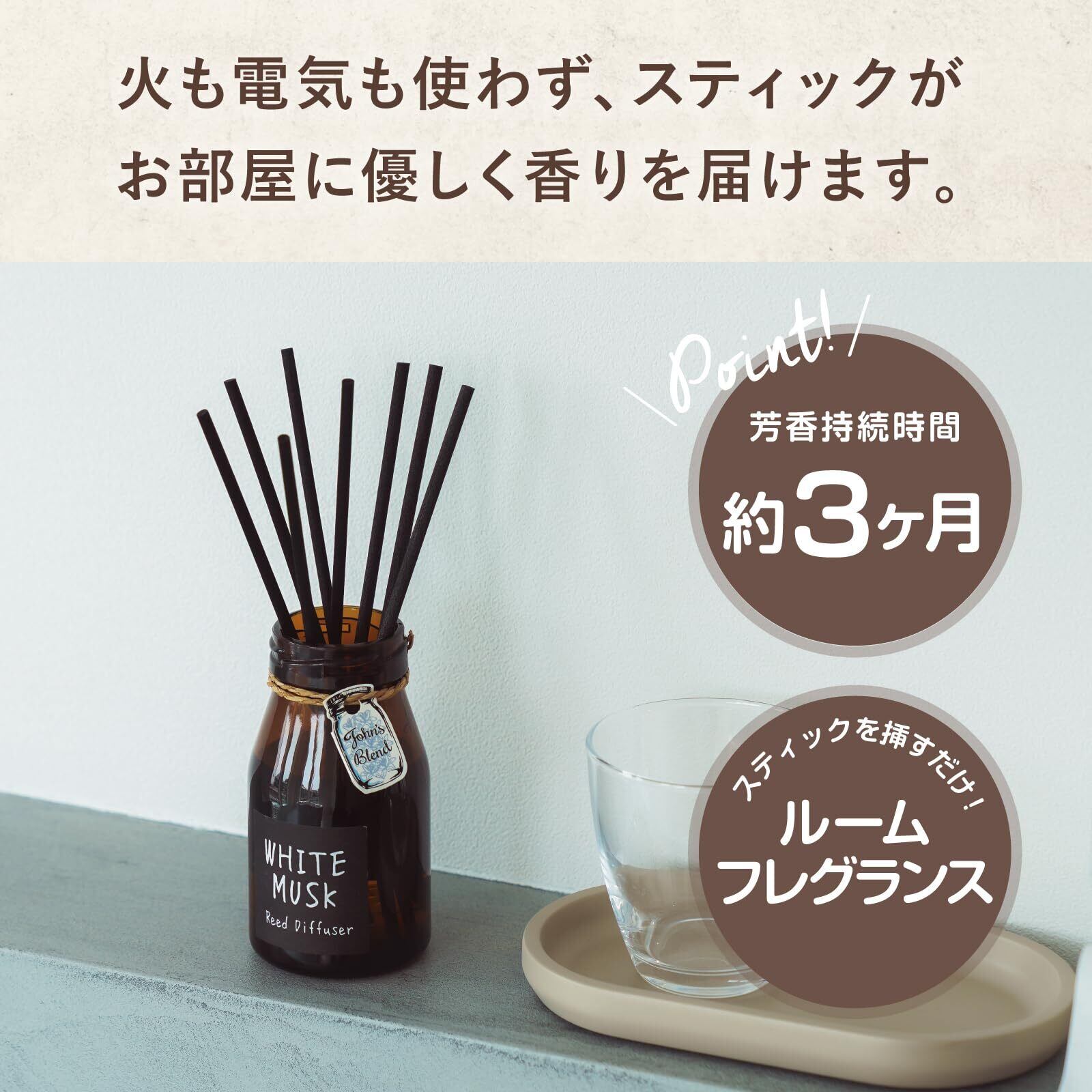 【人気商品】ホワイトムスク ディフューザー ジョンズブレンド 約3ヶ月分 140mL ルームフレグランス リードディフューザー アロマ 部屋用 芳香剤 新生活 ホワイトデー お返し