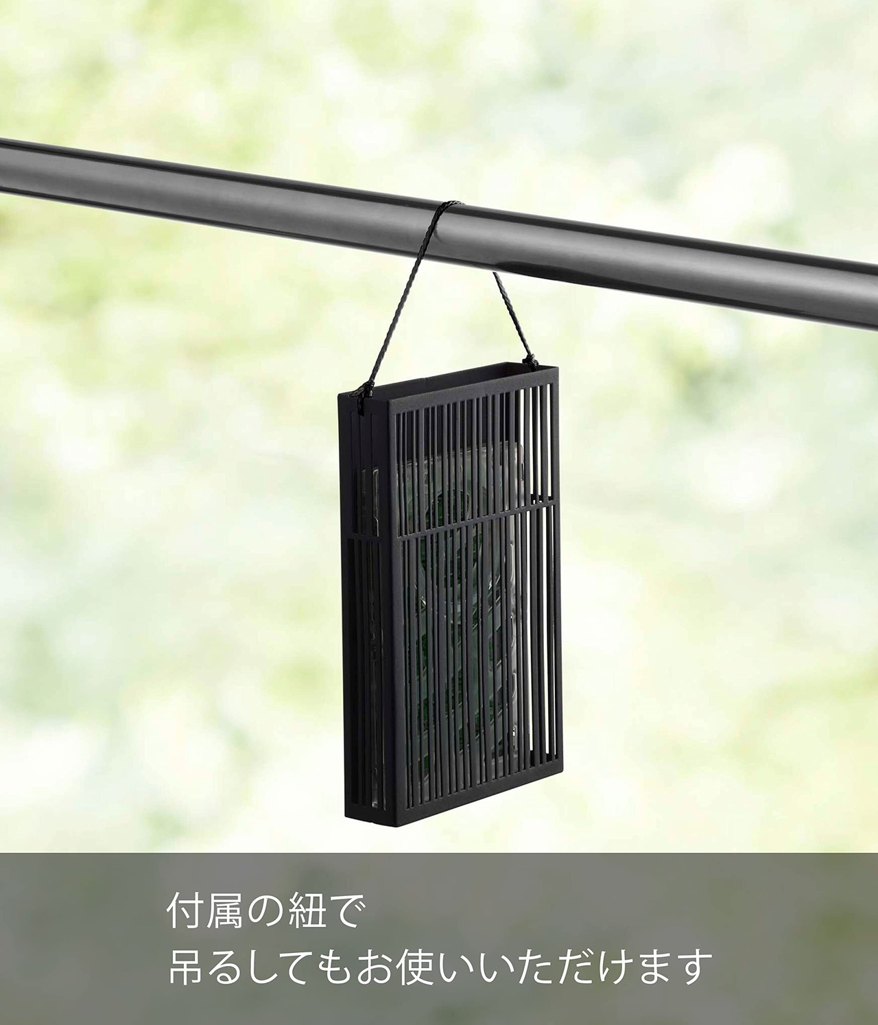 付属の紐を使えば物干し竿などマグネットで取り付けられない場所にも設置出来ます。