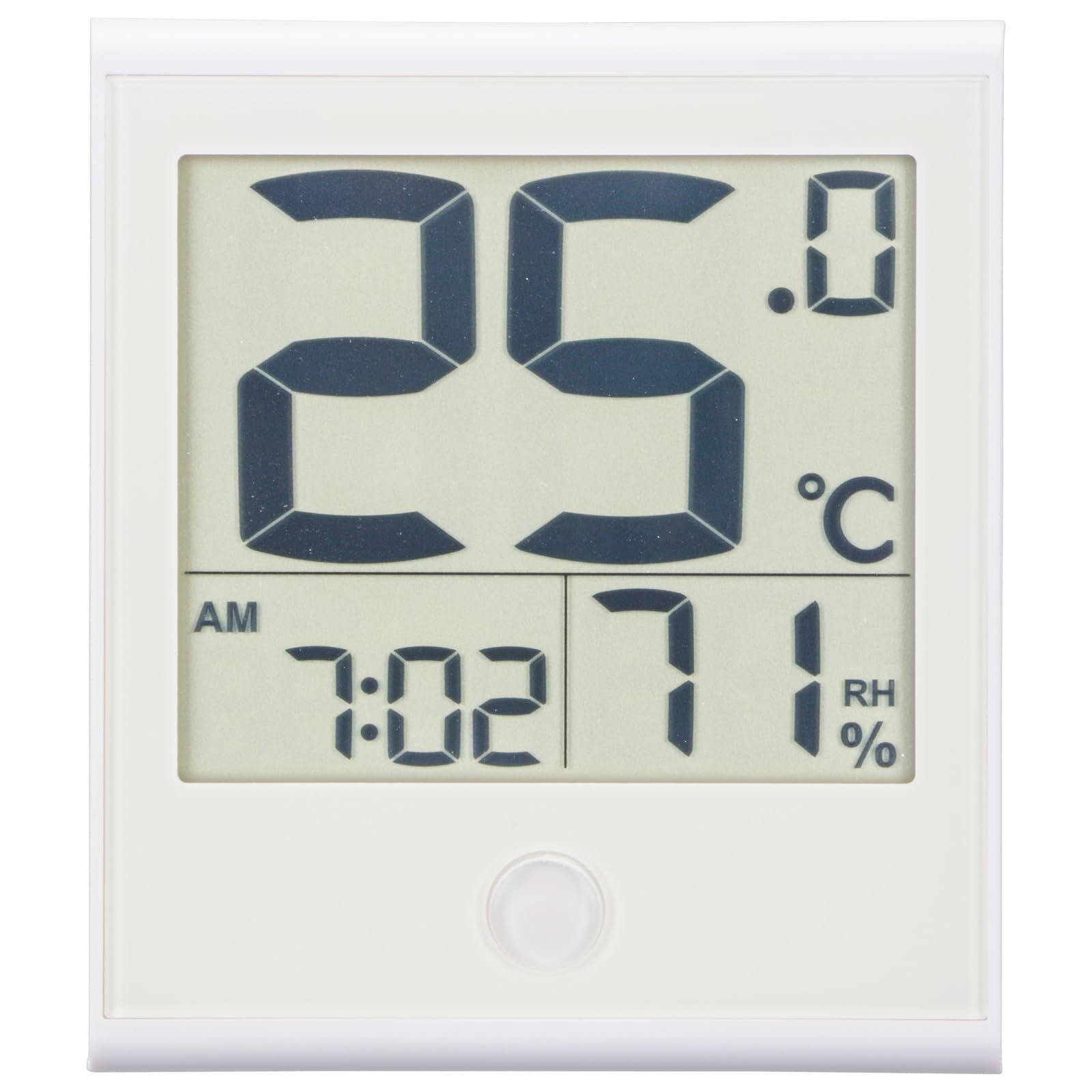 【 特 長 】 ◆冷暖房の温度調整による節電や、熱中症・風邪対策の健康管理に役立ちます ◆見やすい大画面表示 ◆最高・最低温湿度を表示するメモリー機能付き ◆カレンダー表示・時計機能付き ◆置き・掛け両用 ◆本体カラーはホワイト