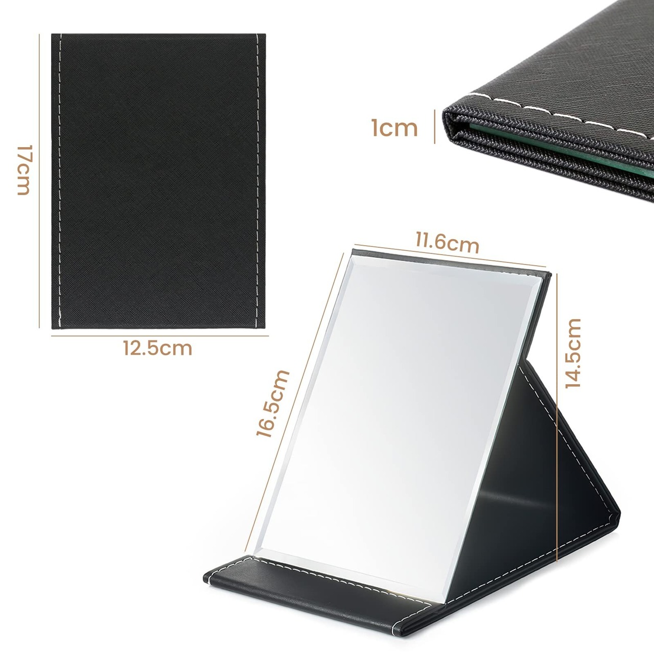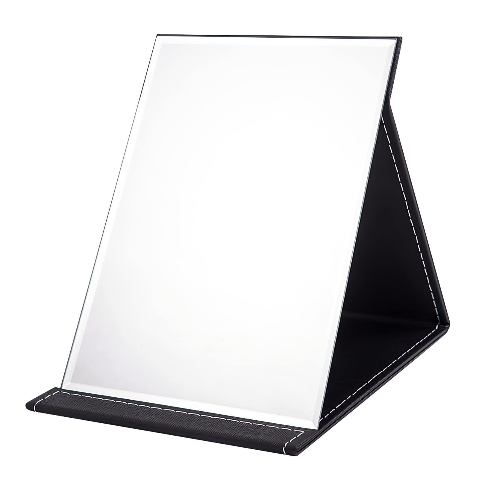 OWLKELA 卓上鏡 コンパクトミラー 折りたたみ手鏡 Sサイズスタンドミラー レザーカバー&割れにくい&おしゃれ 16*12cm ブラックかがみ