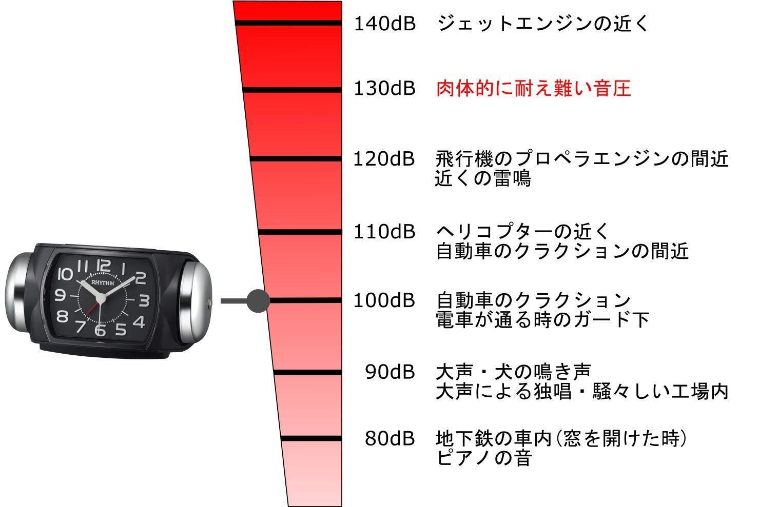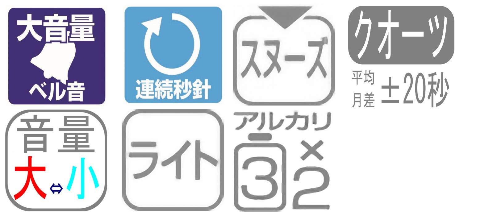 アラーム:大音量ベル音(大⇔小)切替式 (スマートな大音量ベル音目覚まし時計です。音量(大・小)切り替え式です。音の静かな連続秒針で秒針音が気になりません。)