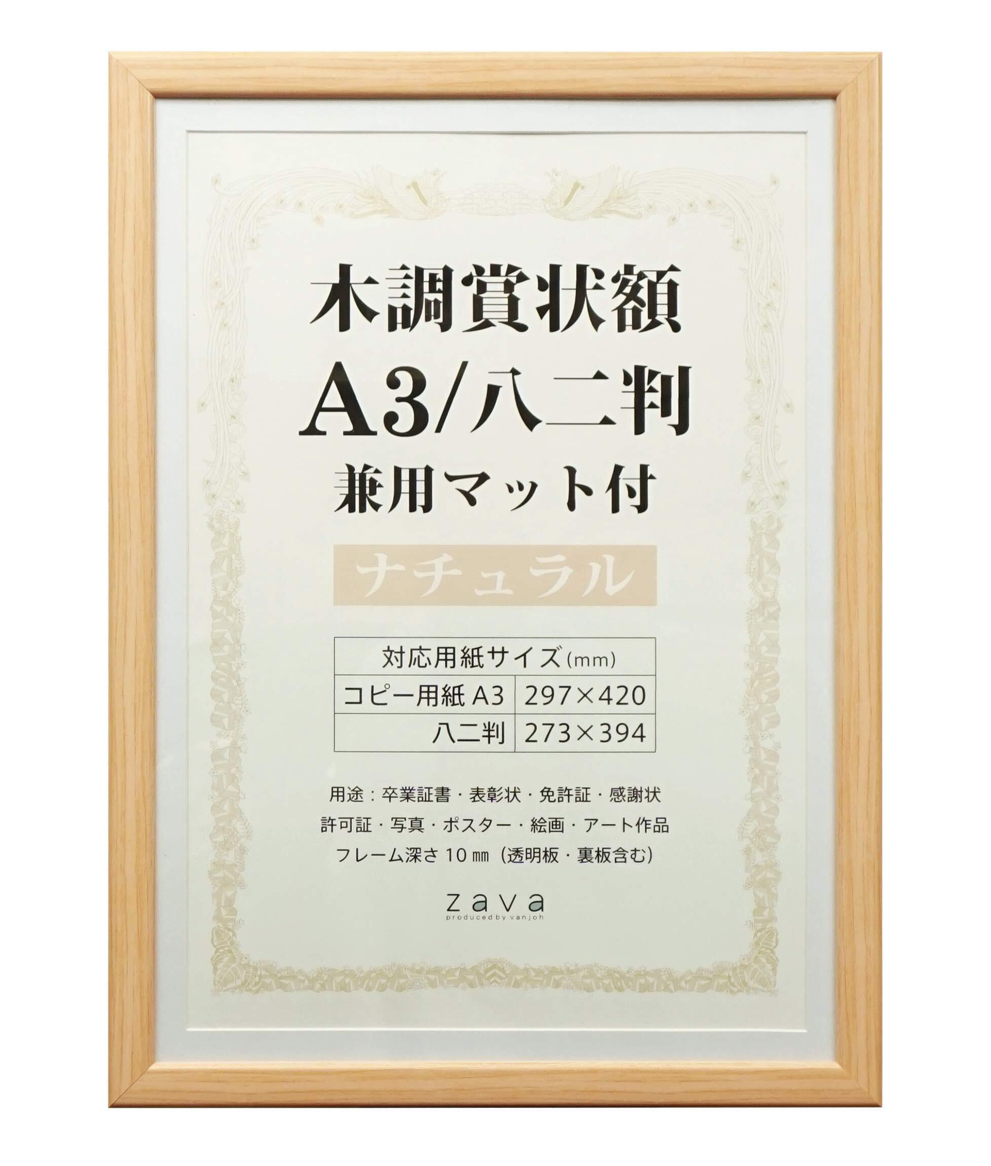 VANJOH 木調賞状額 A3/八二判 兼用マット付き ナチュラル 105874