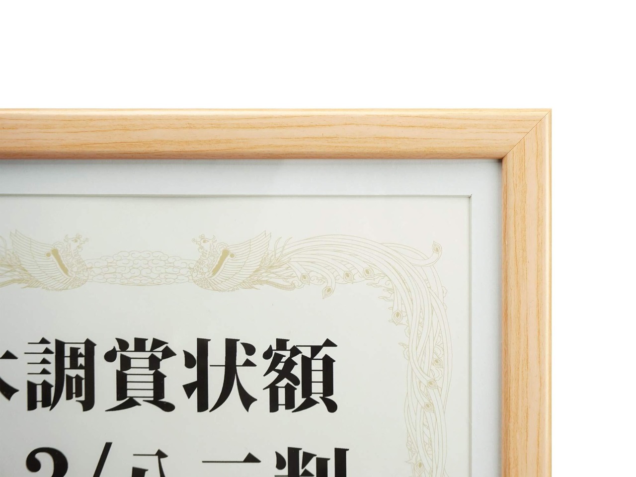 賞状を彩る賞状額にシックな木目調のナチュラルが登場! !