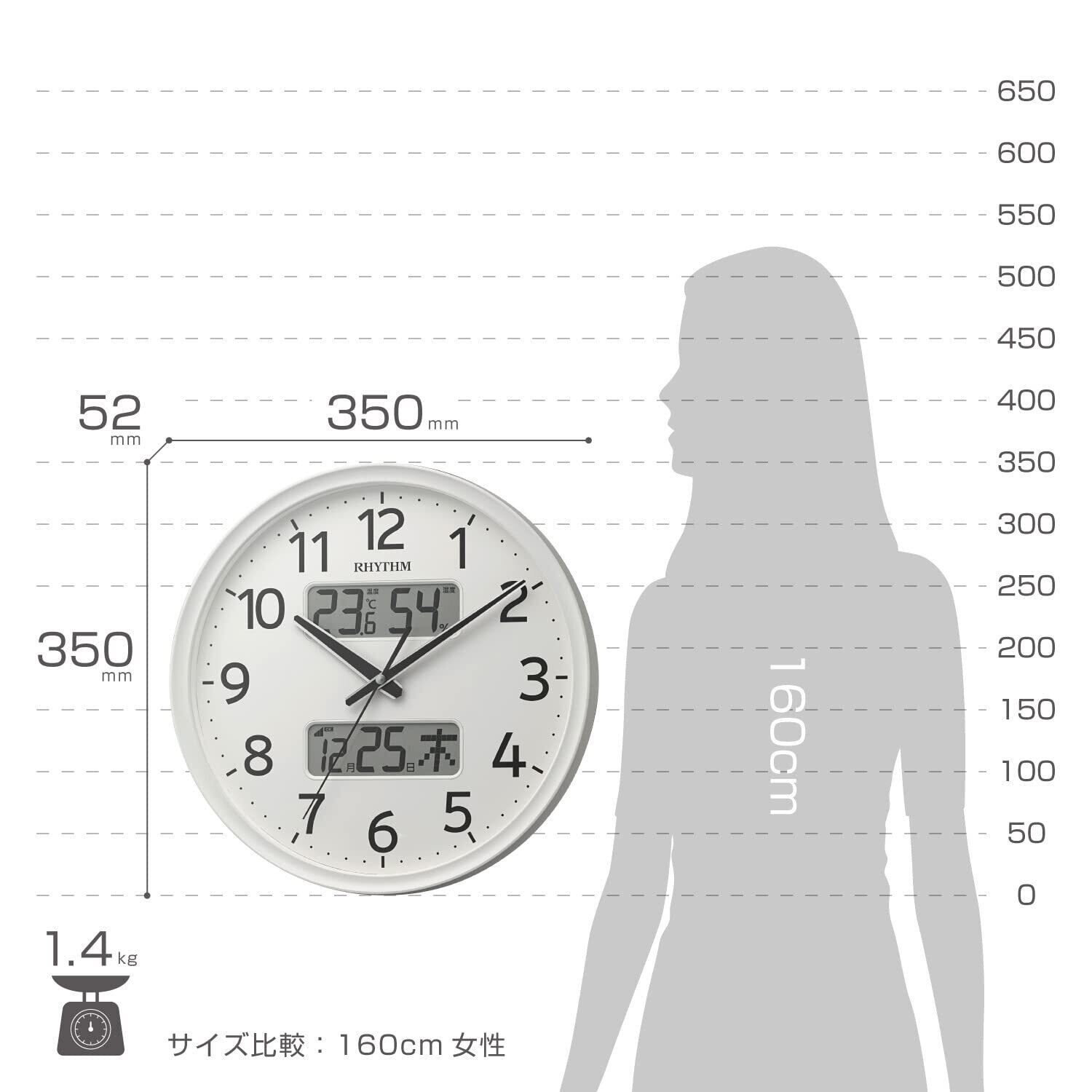 ●音の静かな連続秒針の液晶表示付掛け時計。●すっきりとした細身の枠に文字板を広くとることで、時刻の見易さを考慮したデザインとなっております。
