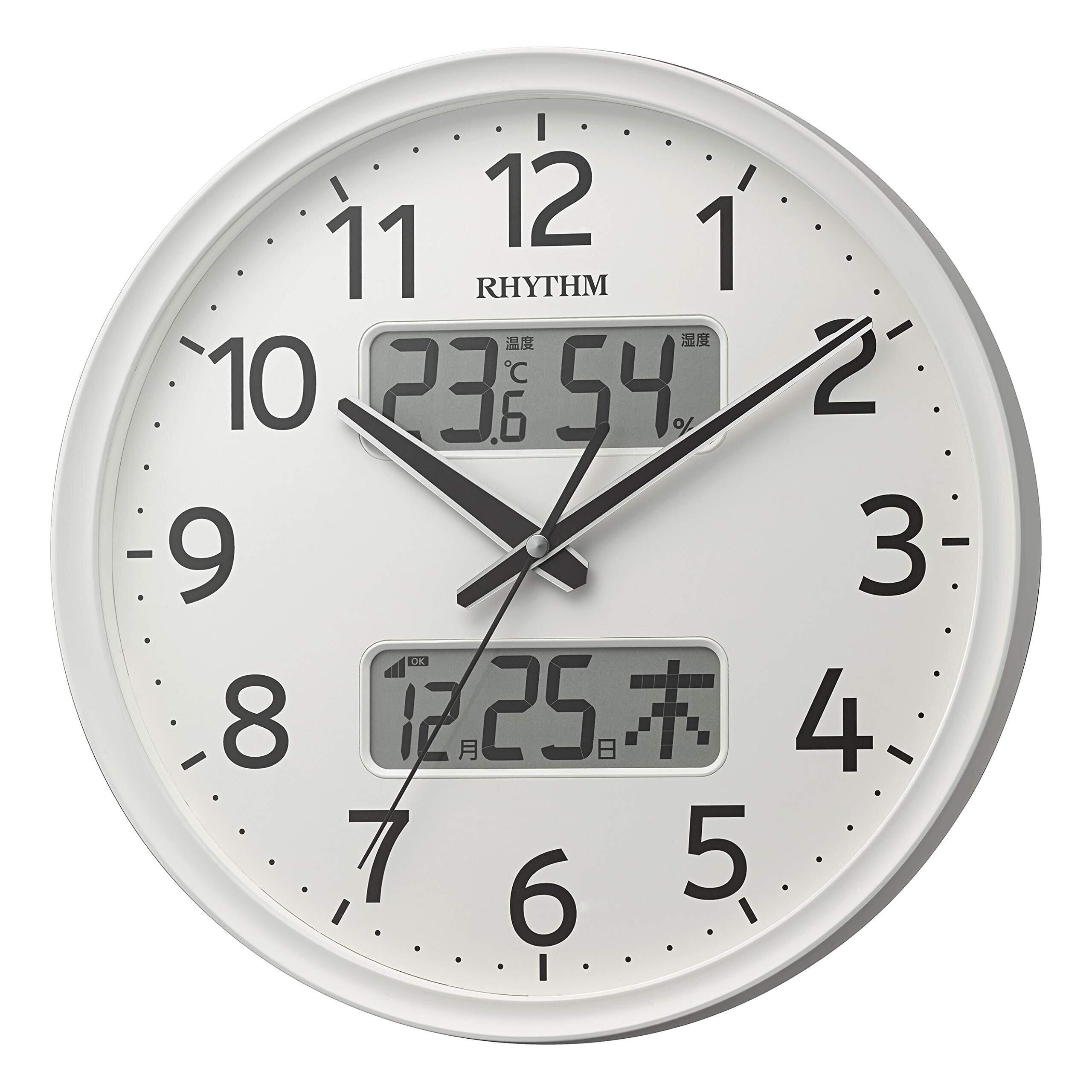 【特価商品】リズム(RHYTHM) 掛け時計 電波時計 アナログ 連続秒針 温度 湿度 カレンダー 白 Φ35x5.3cm 8FYA03SR03