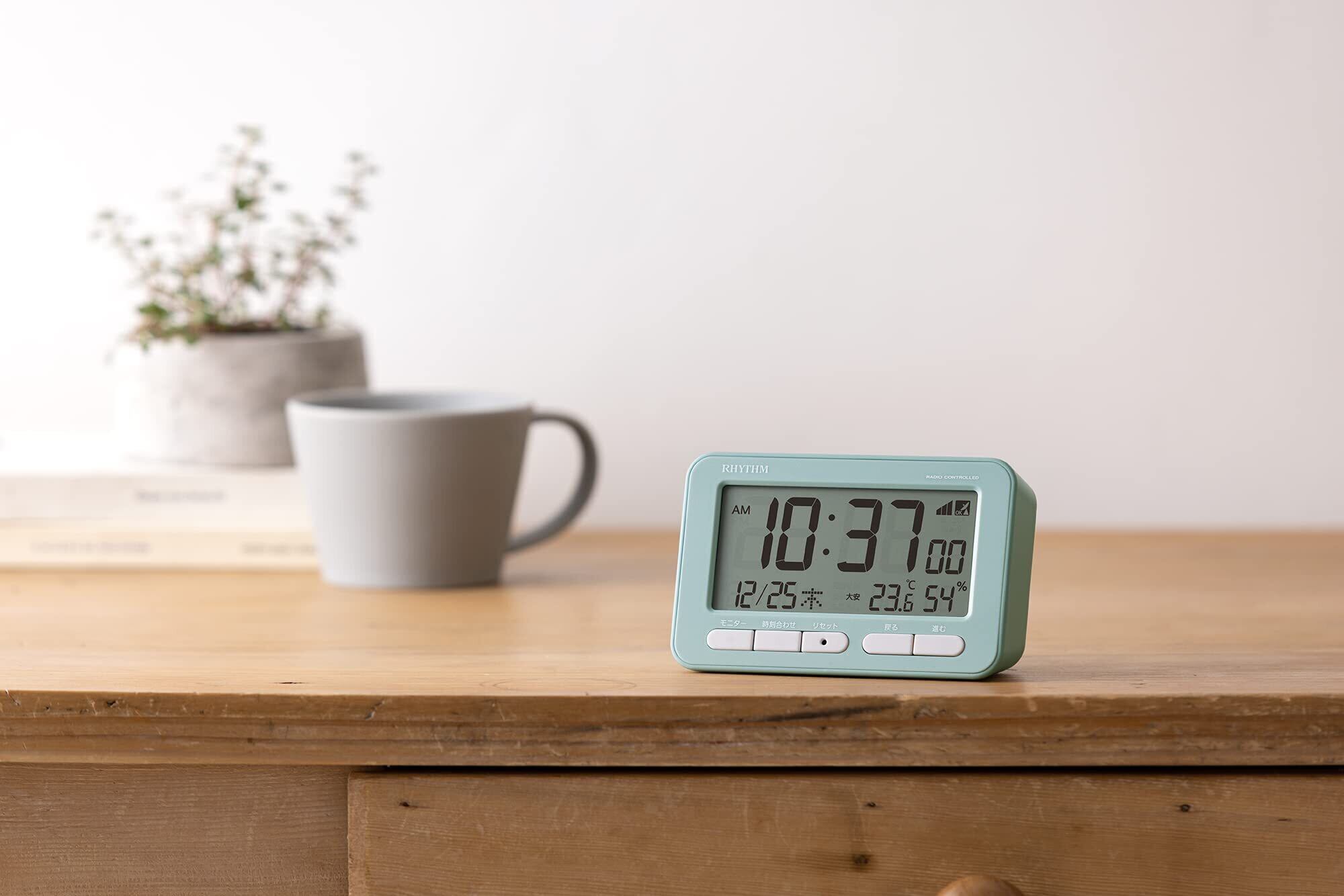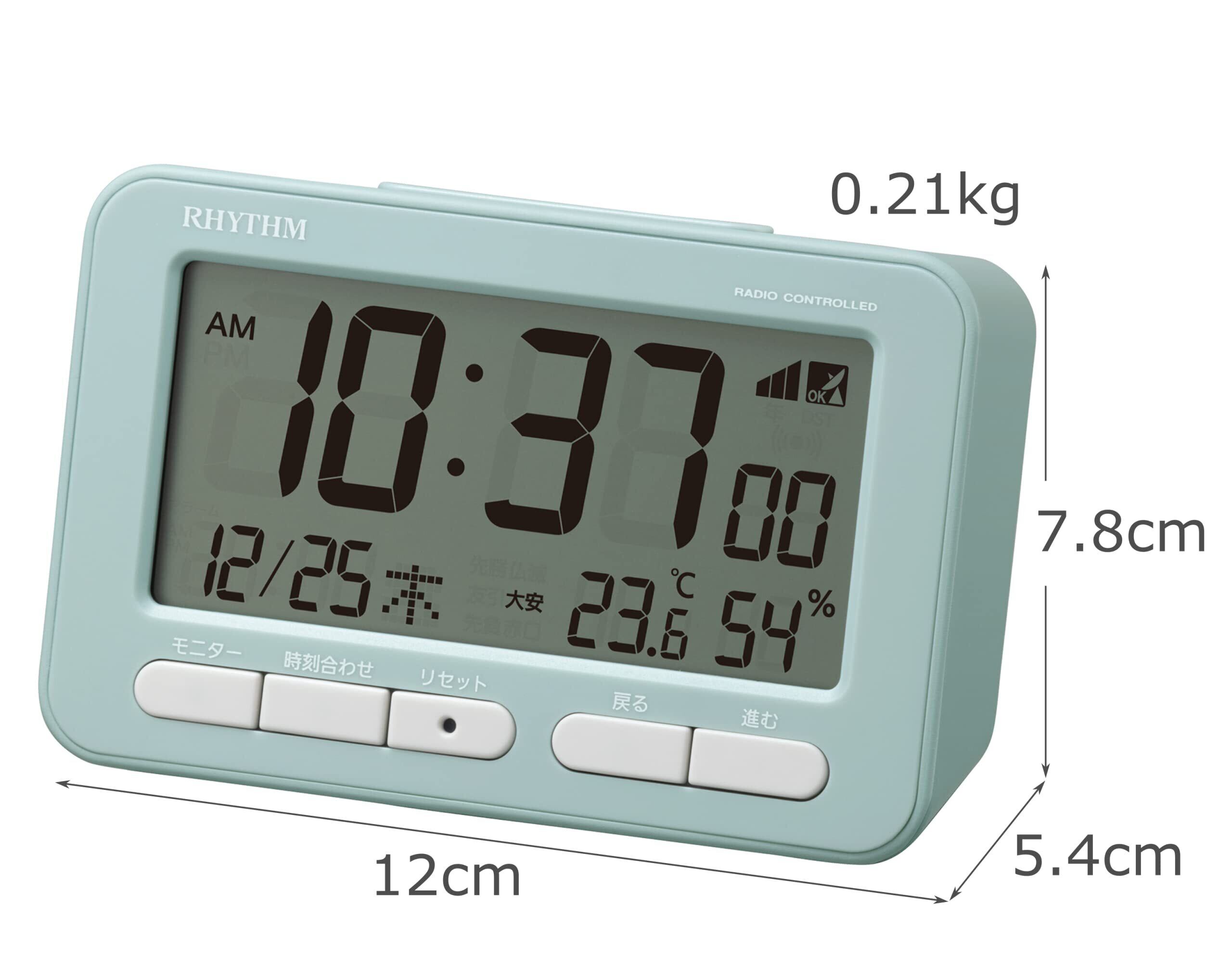 【新春セール】リズム(RHYTHM) 目覚まし時計 電波時計 電子音 アラーム (スヌーズ 付) 温度計 湿度計 カレンダー ブルー 7.8×12×5.4cm フィットウェーブ D234 8RZ234SR04