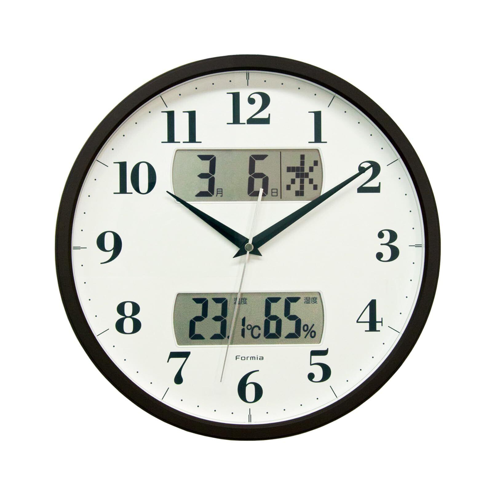 Formia(フォルミア) 掛け時計 時計 壁掛け 電波時計 静音 温度 湿度 温湿度計 日付 カレンダー 曜日 夜間秒針停止 アナログ 保土ヶ谷電子販売 ブラウン HWC-001