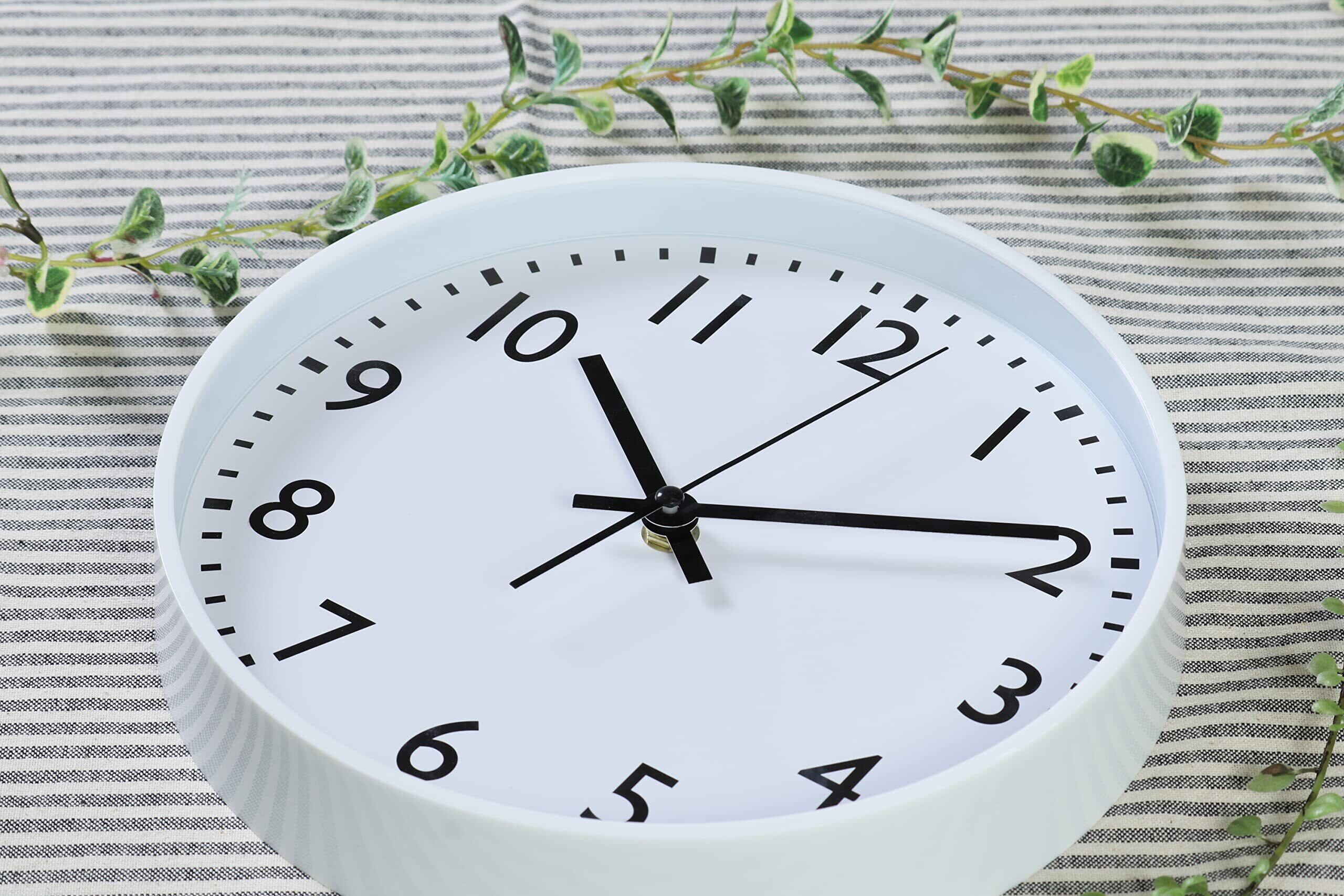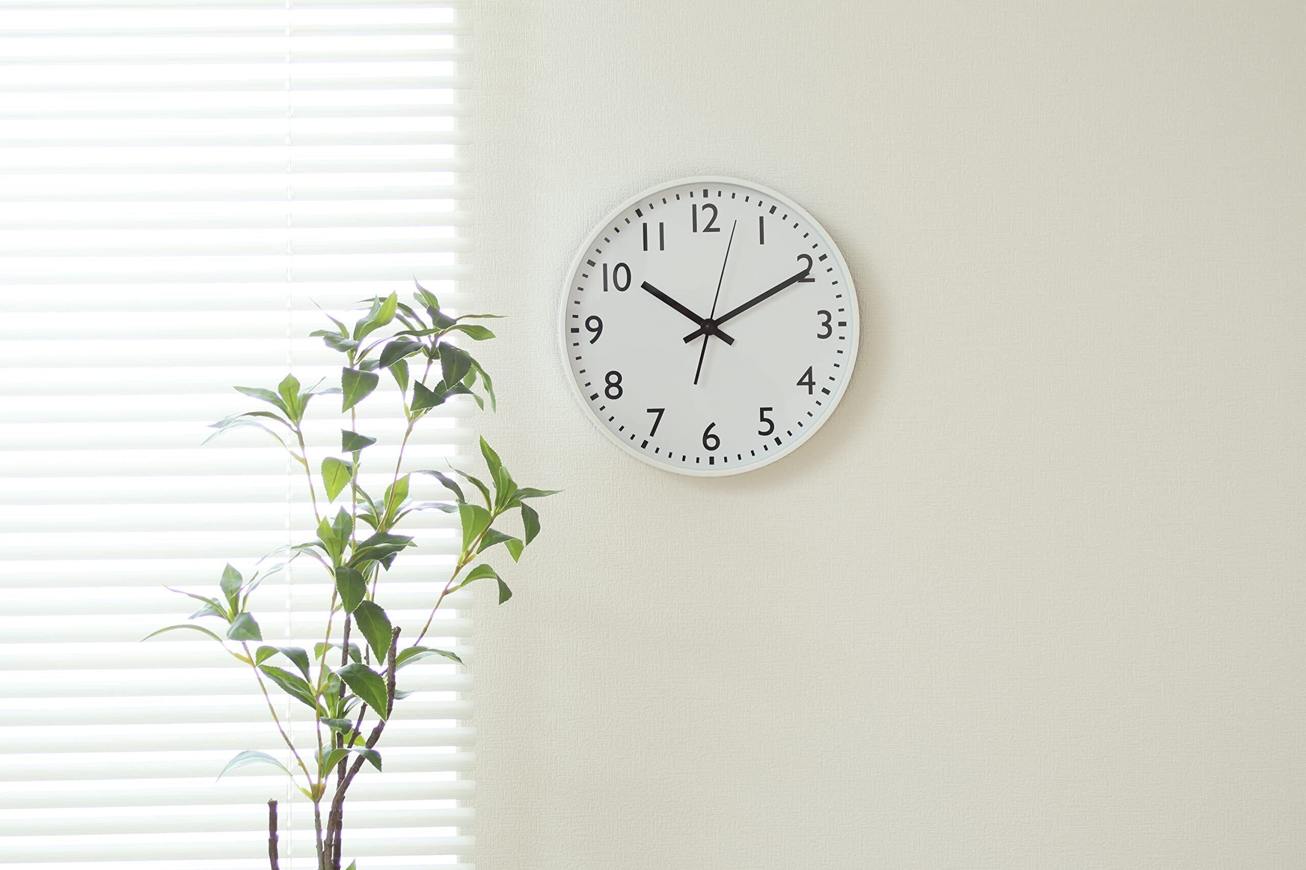 遠くからでも見やすいシンプルなデザインの掛時計。