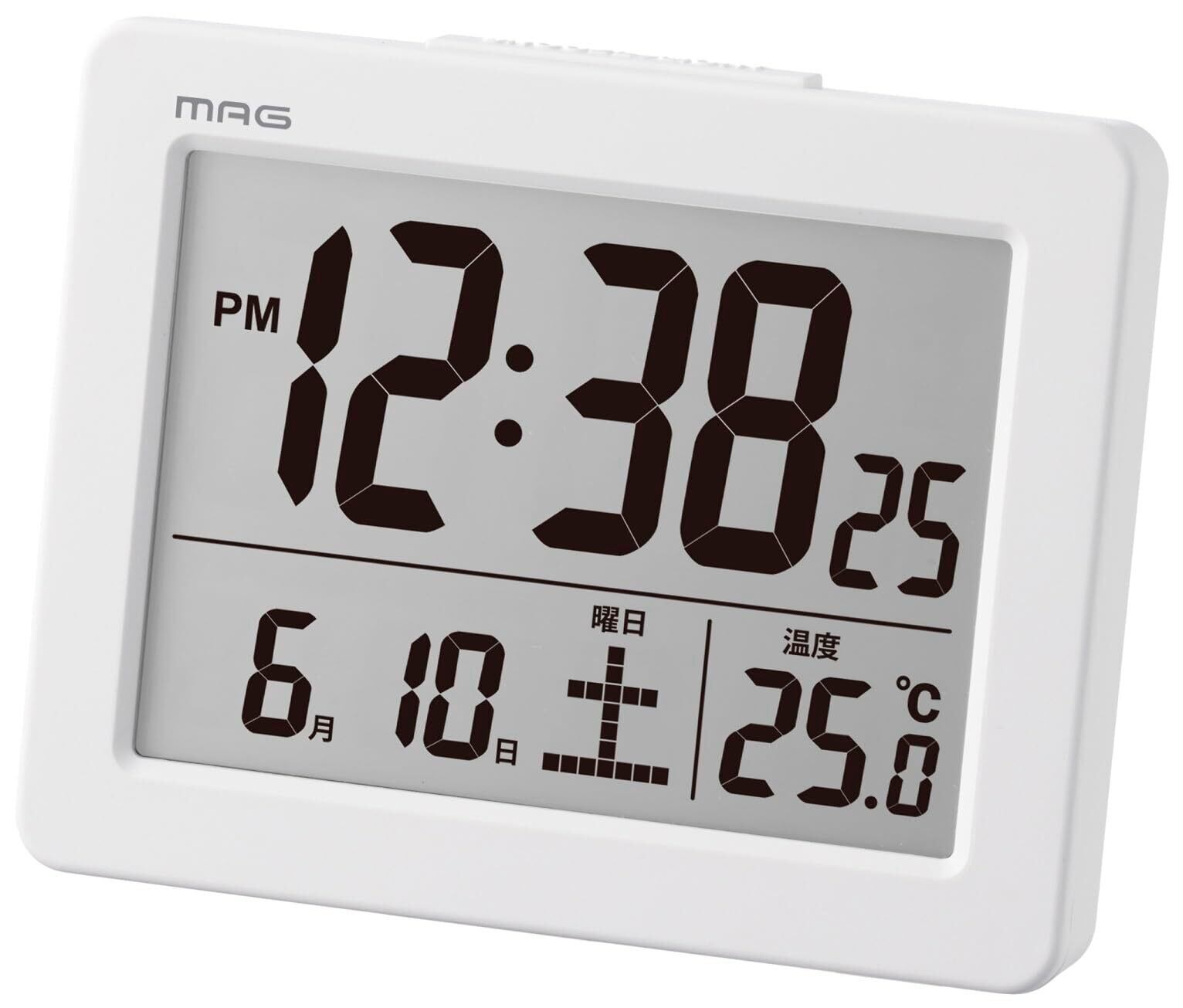 【新着商品】MAG(マグ) 目覚まし時計 置き時計 小型 小さい デジタル 温度計 カレンダー 電子音 アラーム スヌーズ ライト ホワイト ブリム T-779A WH-Z ノア精密