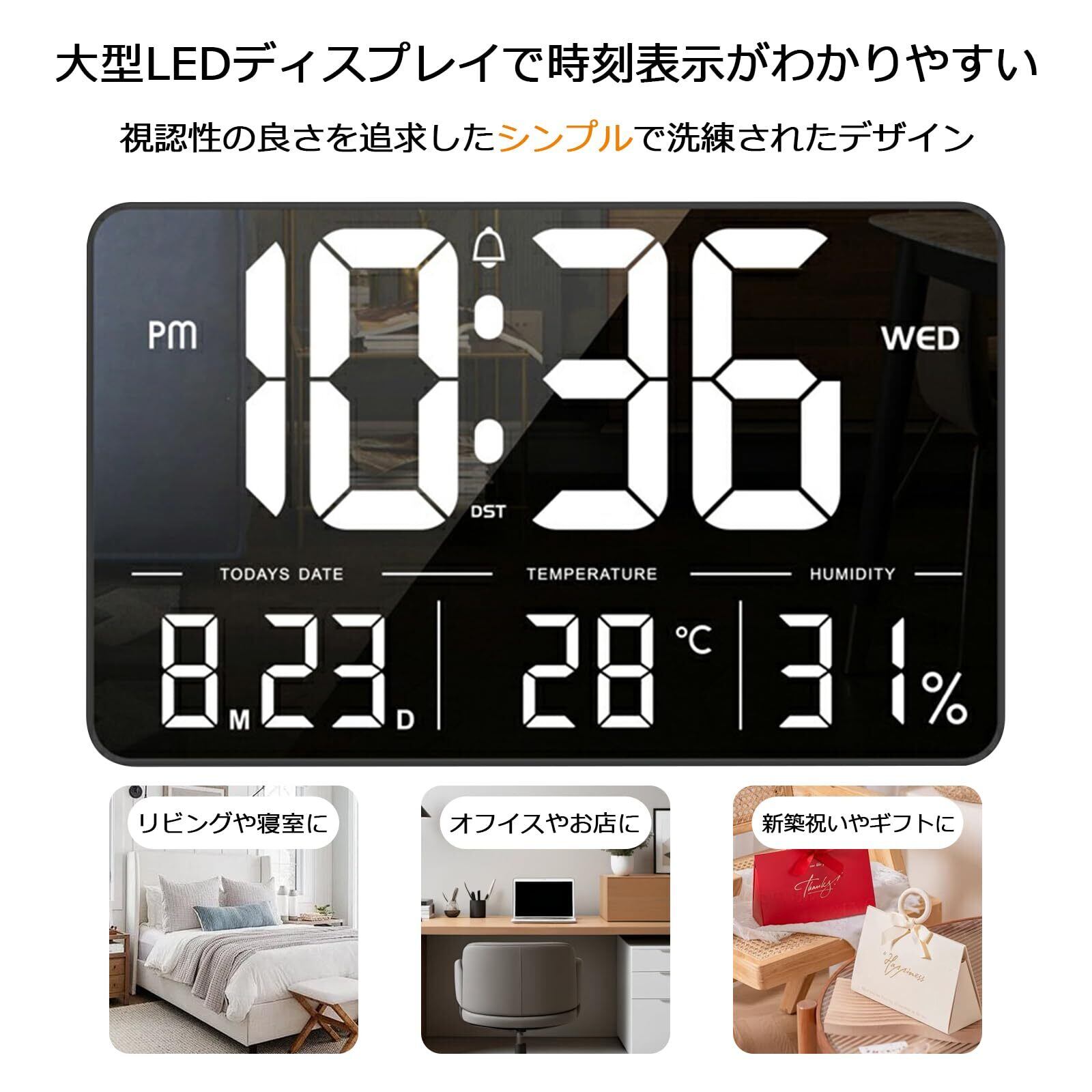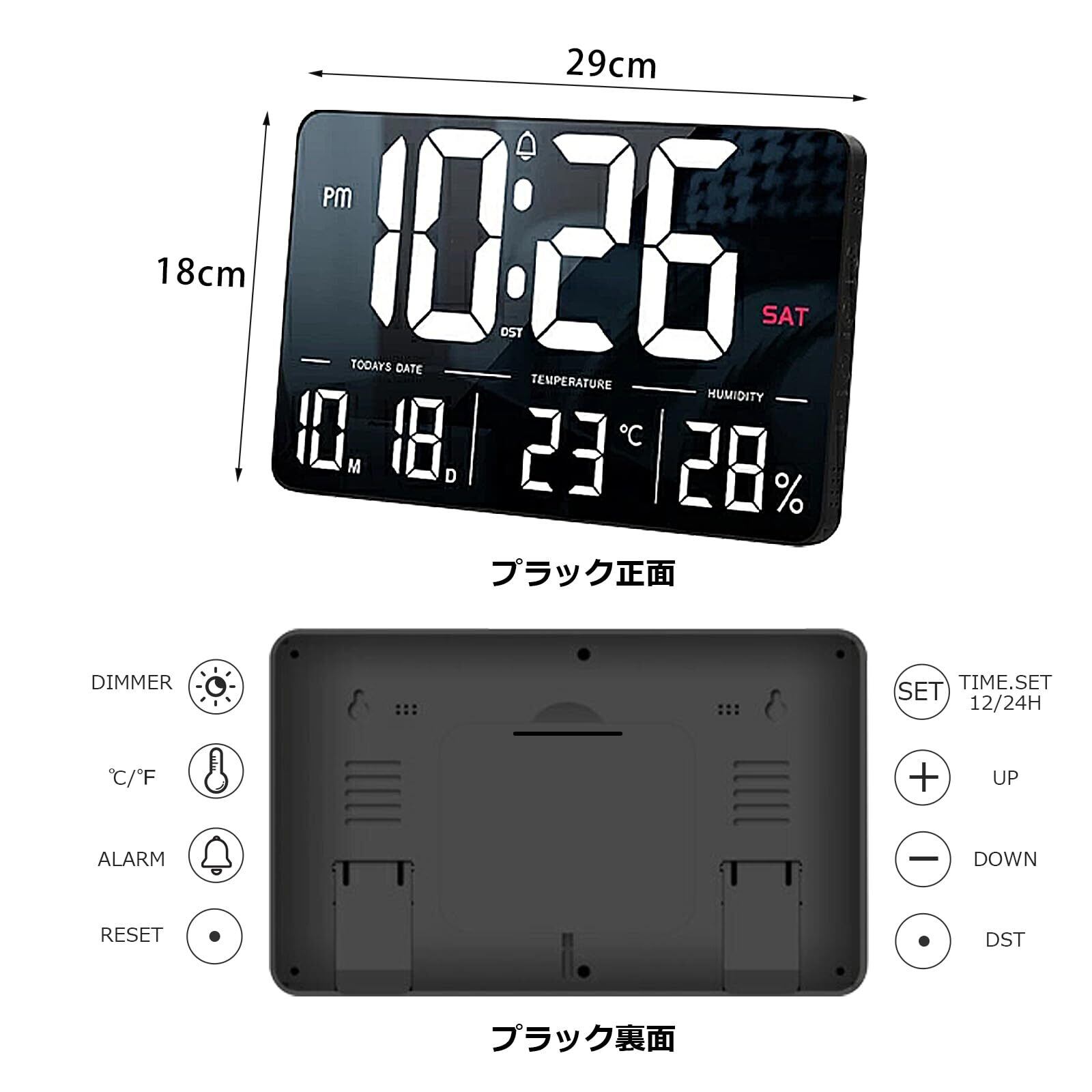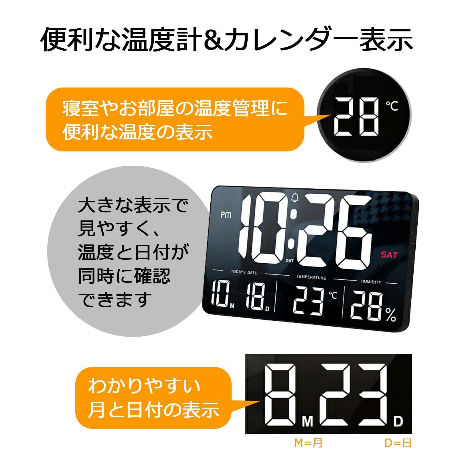 【数量限定】デジタル時計 壁掛け 大型 LED 目覚まし時計 明るさ調節可能 月/日/温度/湿度/時刻表示 12時間/24時間切替式デジタル時計 置き時計 リモコン操作付き 家庭用/オフィス用/教室用 (ブラック)