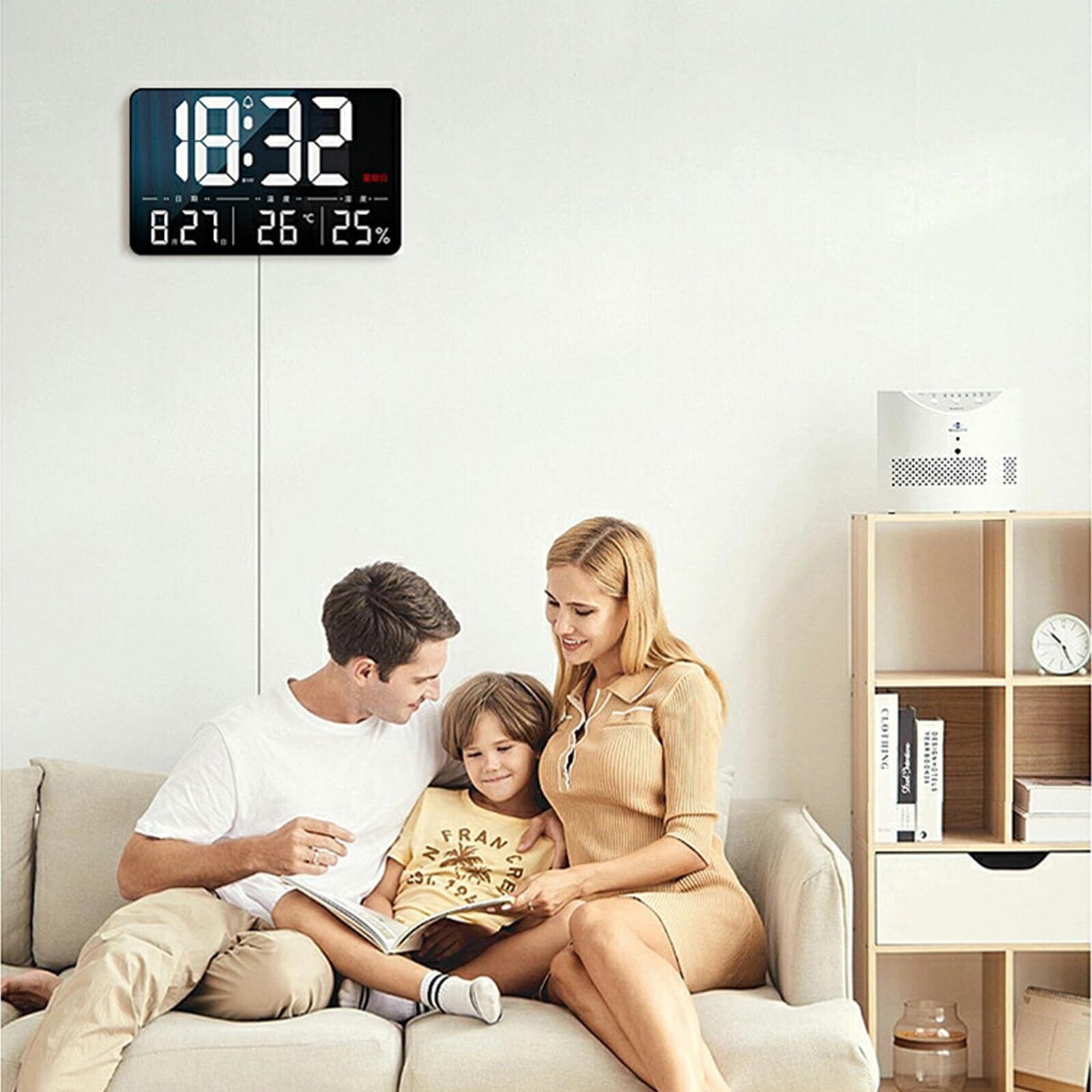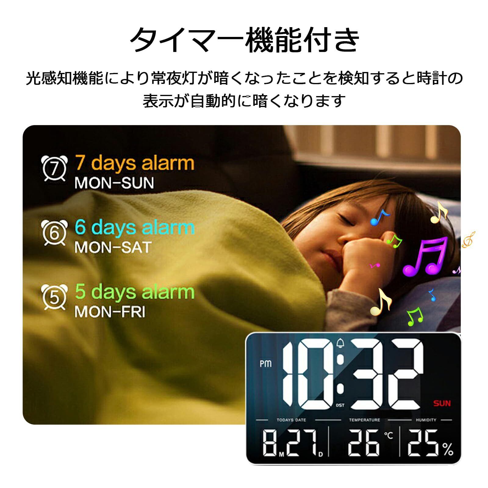 【多機能デジタル時計 壁掛け】 ①12/24時間表示 ②°C/°F 温度表示 ③曜日表示 ④カレンダー ⑤目覚まし時計 ⑥湿度表示 ⑦メモリータイム機能 ⑧明るさ調節機能 ⑨便利なリモコン操作。縦置き、平置き、壁掛け可能(注:このデジタル時計はUSBポートアダプターにのみ接続可能で、時計を作動させるためにはプラグを差し込む必要があります)