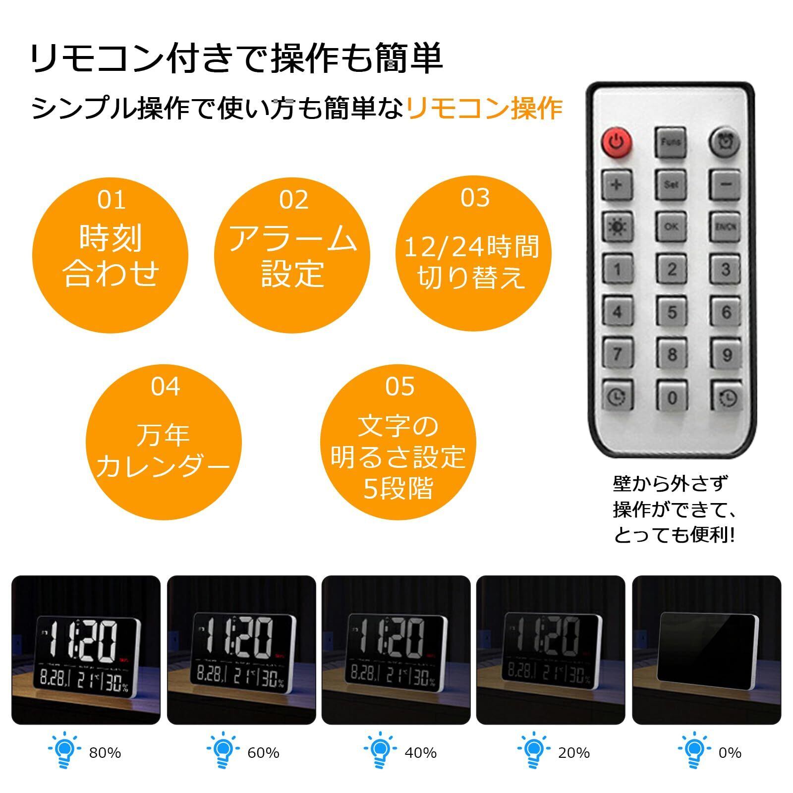 デジタル時計 壁掛け 大型 LED 目覚まし時計 明るさ調節可能 月/日/温度/湿度/時刻表示 12時間/24時間切替式デジタル時計 置き時計 リモコン操作付き 家庭用/オフィス用/教室用 (ブラック)