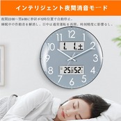 掛け時計 電波時計 温度・湿度・日付・曜日表示 33cm直径 アナログ 夜間秒針止まり(22時~6時) 静音 球面ガラス グレー