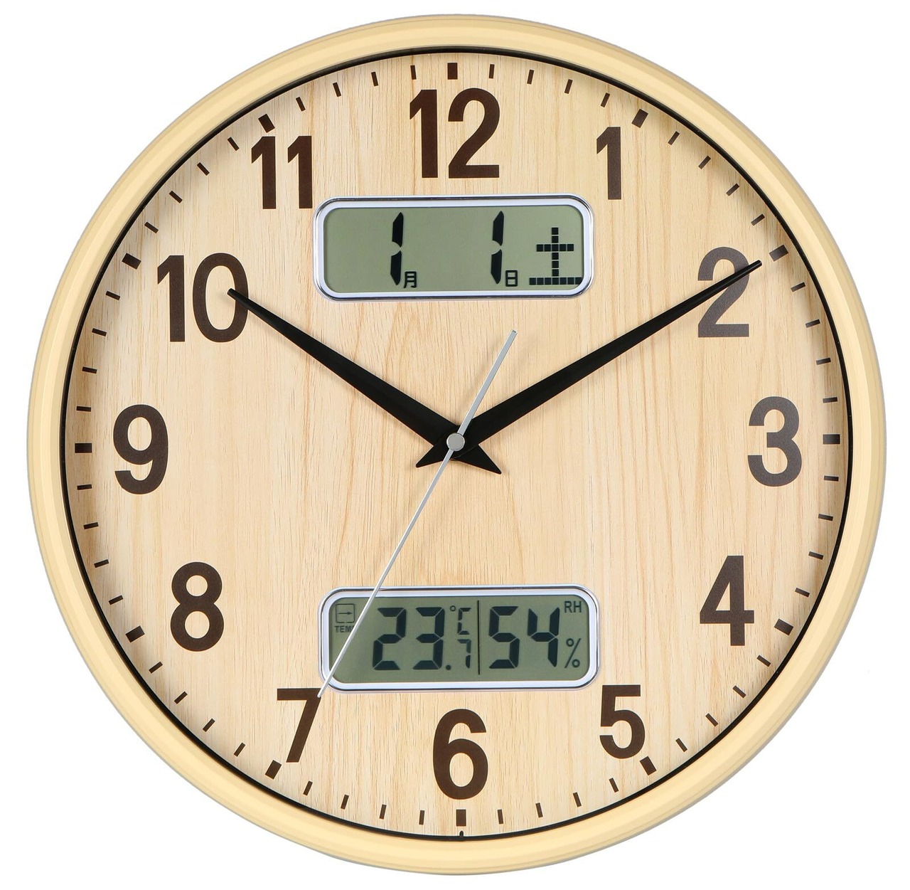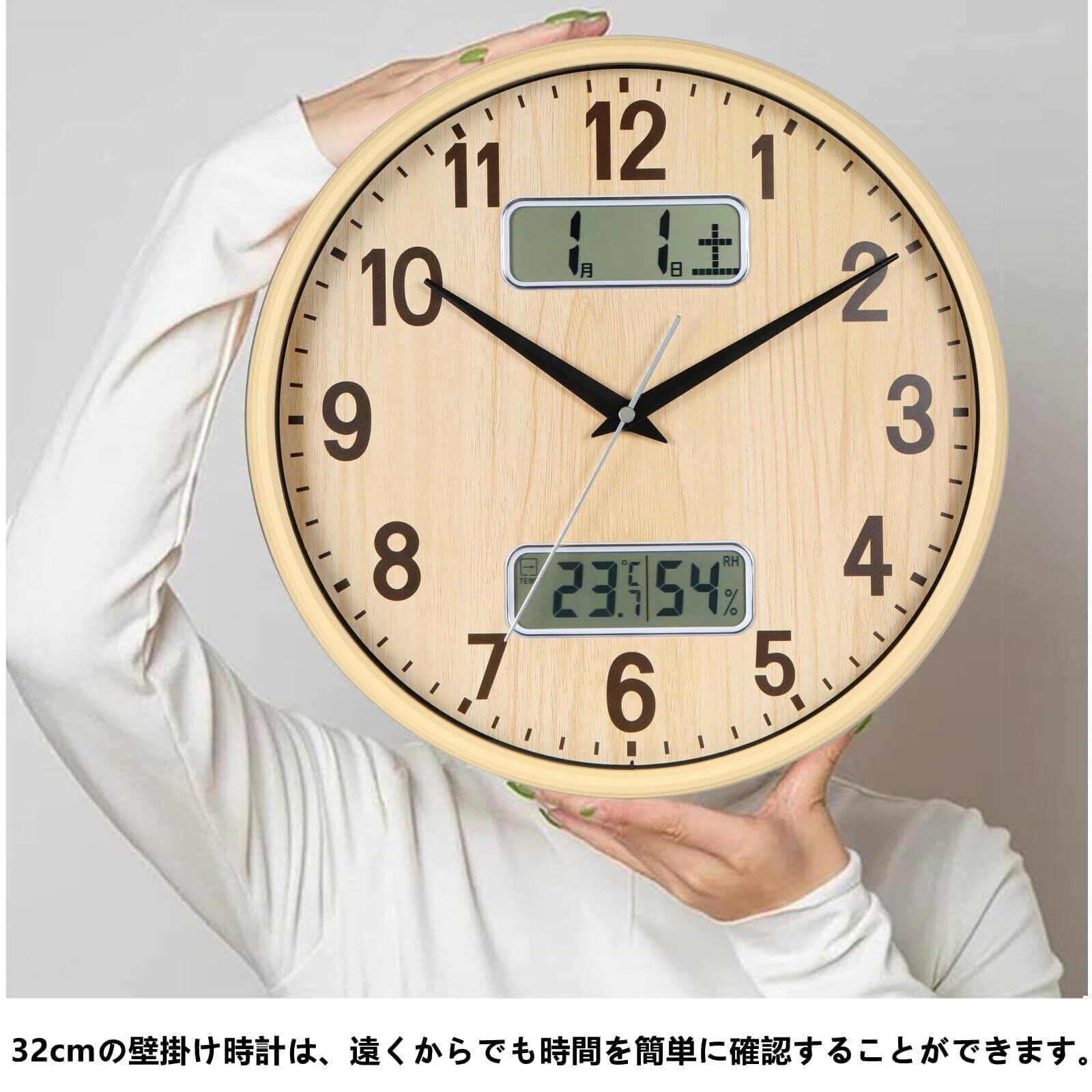 【特価セール】掛け時計 電波時計 アナログ カレンダー 温度 湿度 表示 直径32cm 静音 連続秒針 MDB-7732