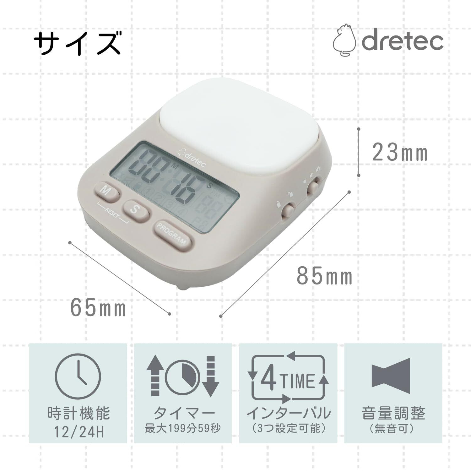 【数量限定】ドリテック(dretec) ラーニングタイマー 私のルーティン 勉強 カウントダウン 消音 音量切替機能 最大199分55秒 繰り返し インターバル 時計 光 ダークグレー