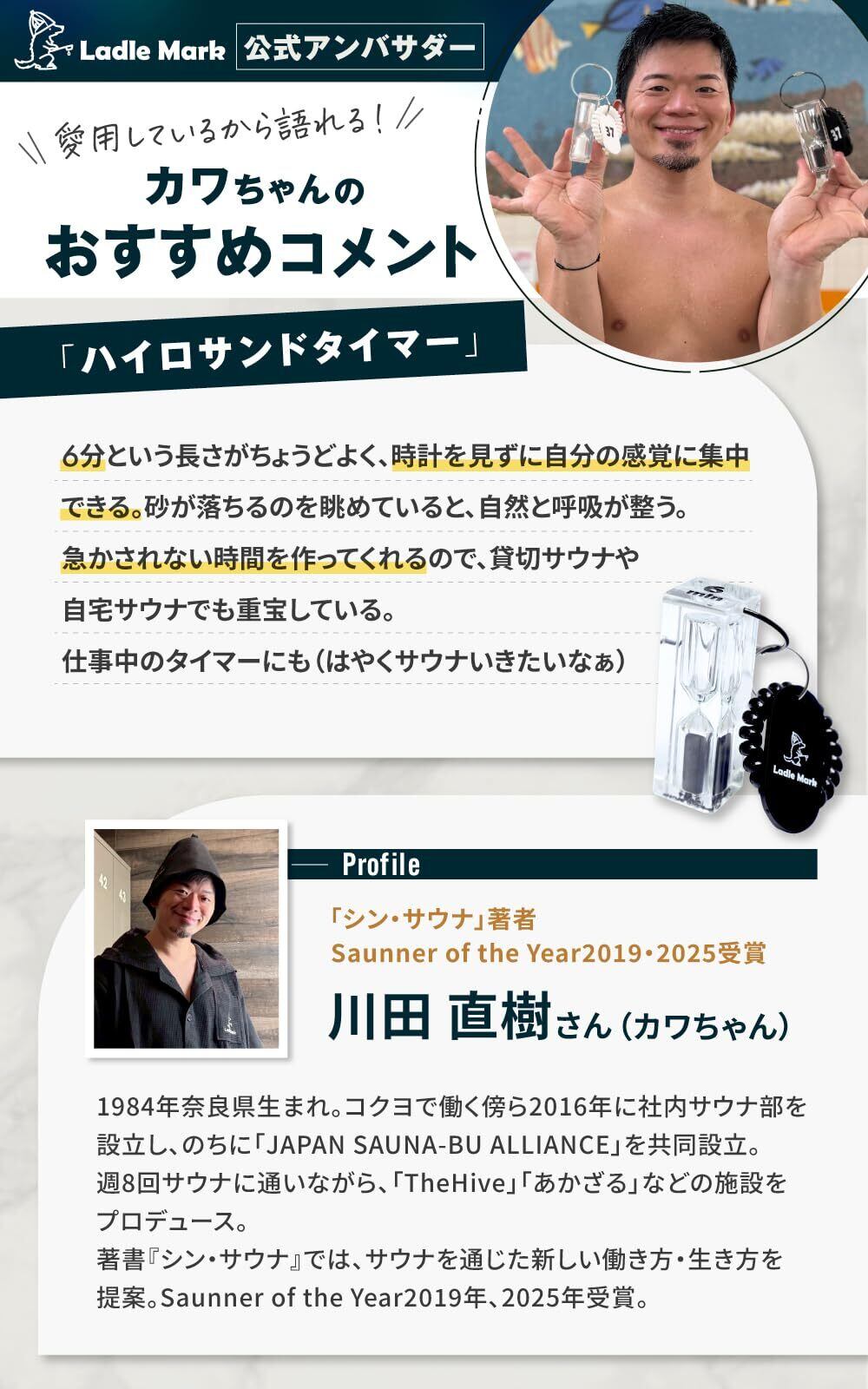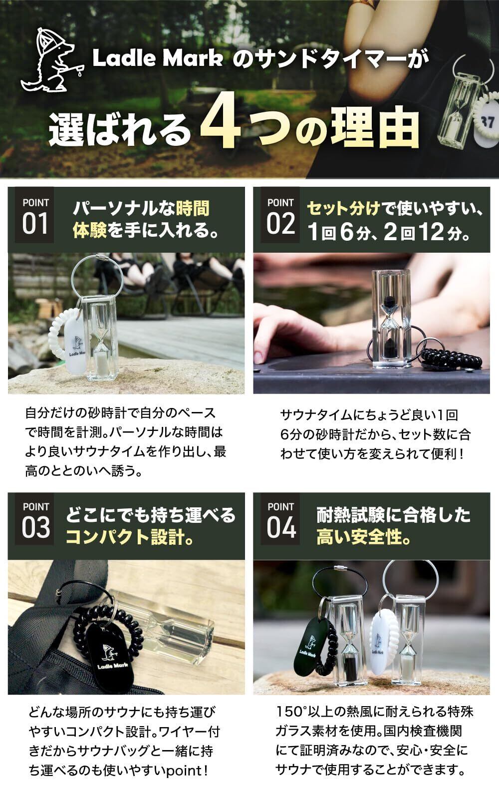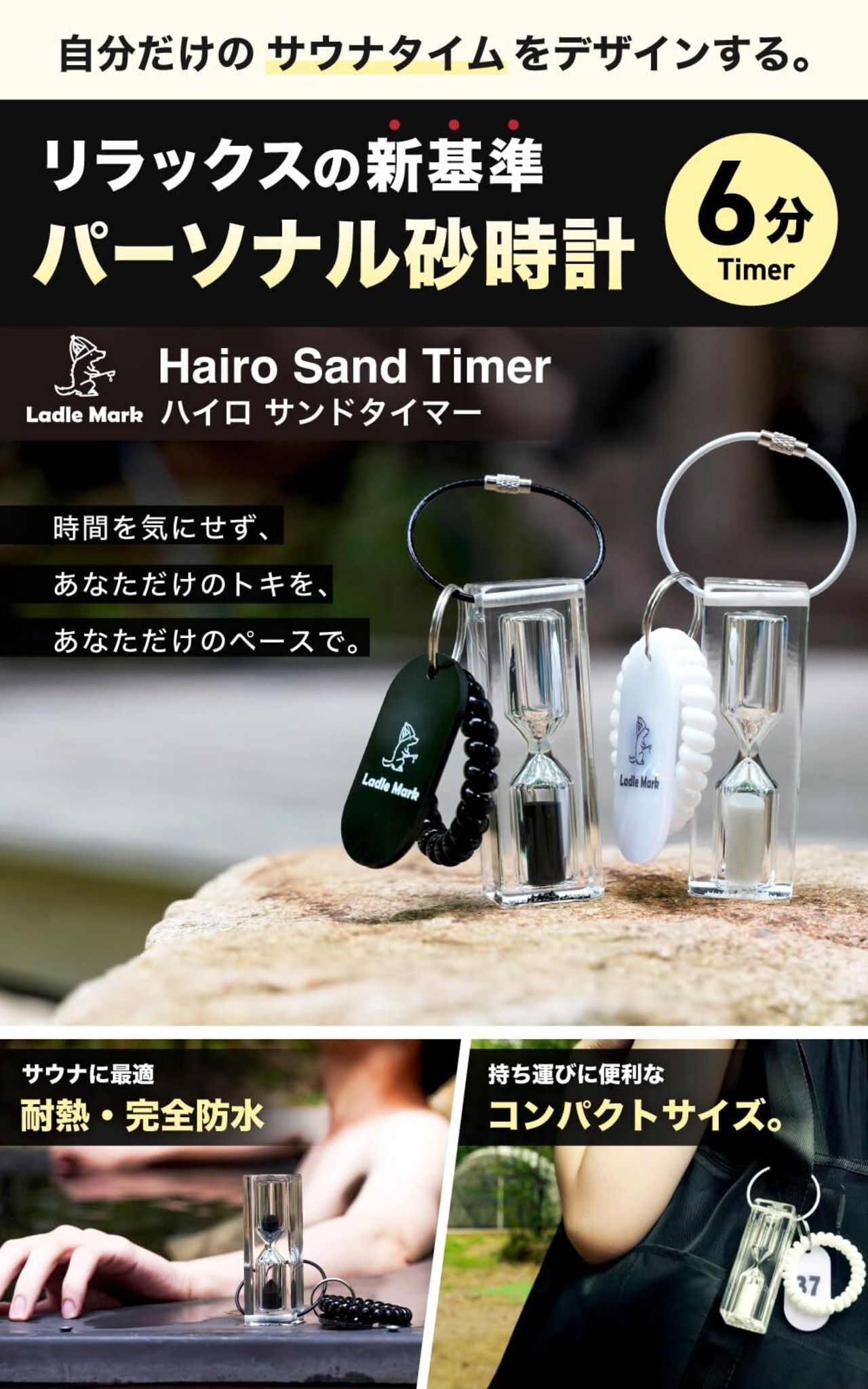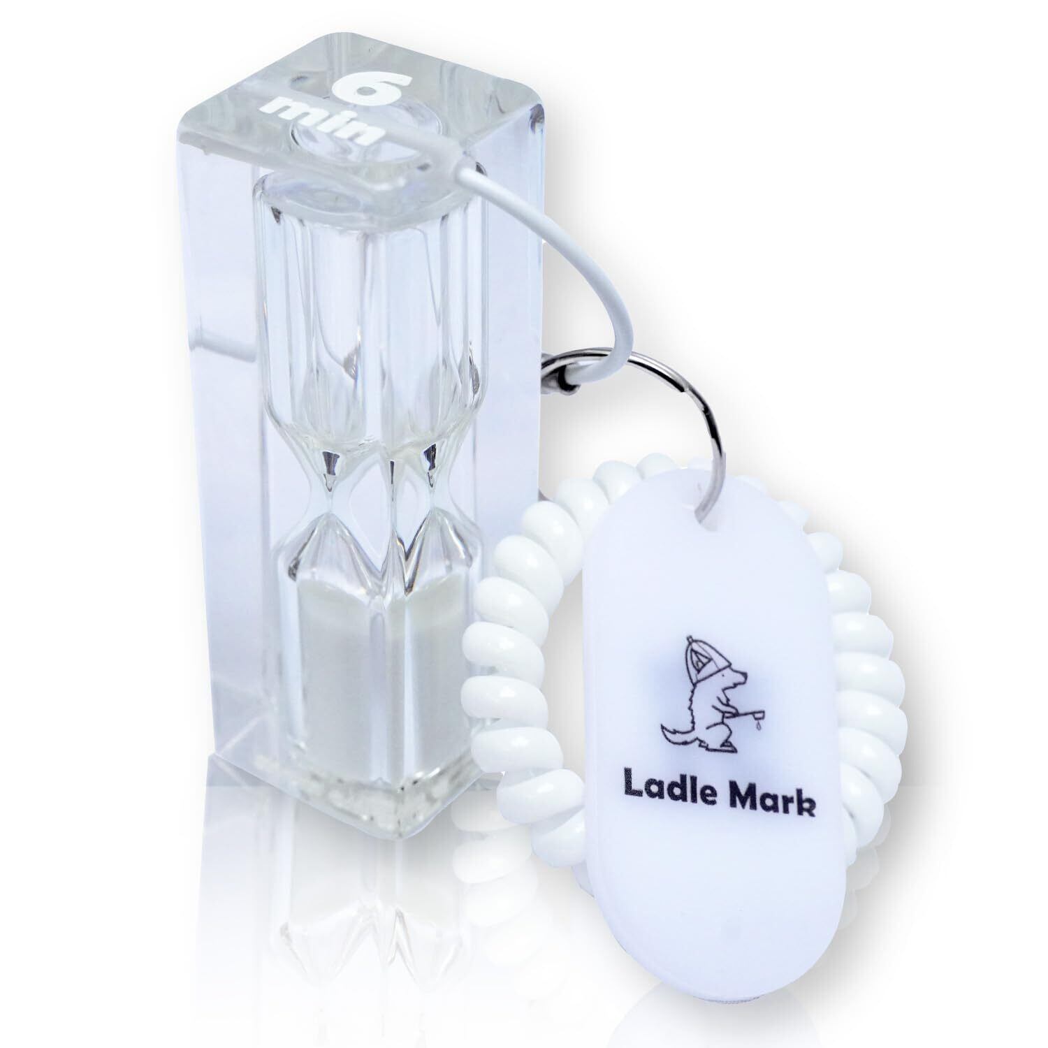 Ladle Mark ハイロ サンドタイマー サウナ ガラス 防水 砂時計 6分計 6min 自分だけの時間 おしゃれ サウナタイム 水風呂 耐熱性 軽量 携帯 割れにくい 12分計 防水タイマー サウナウォッチ hourglass アクリル ホワイト White (白) ラドルマーク