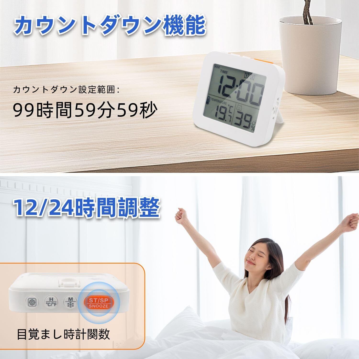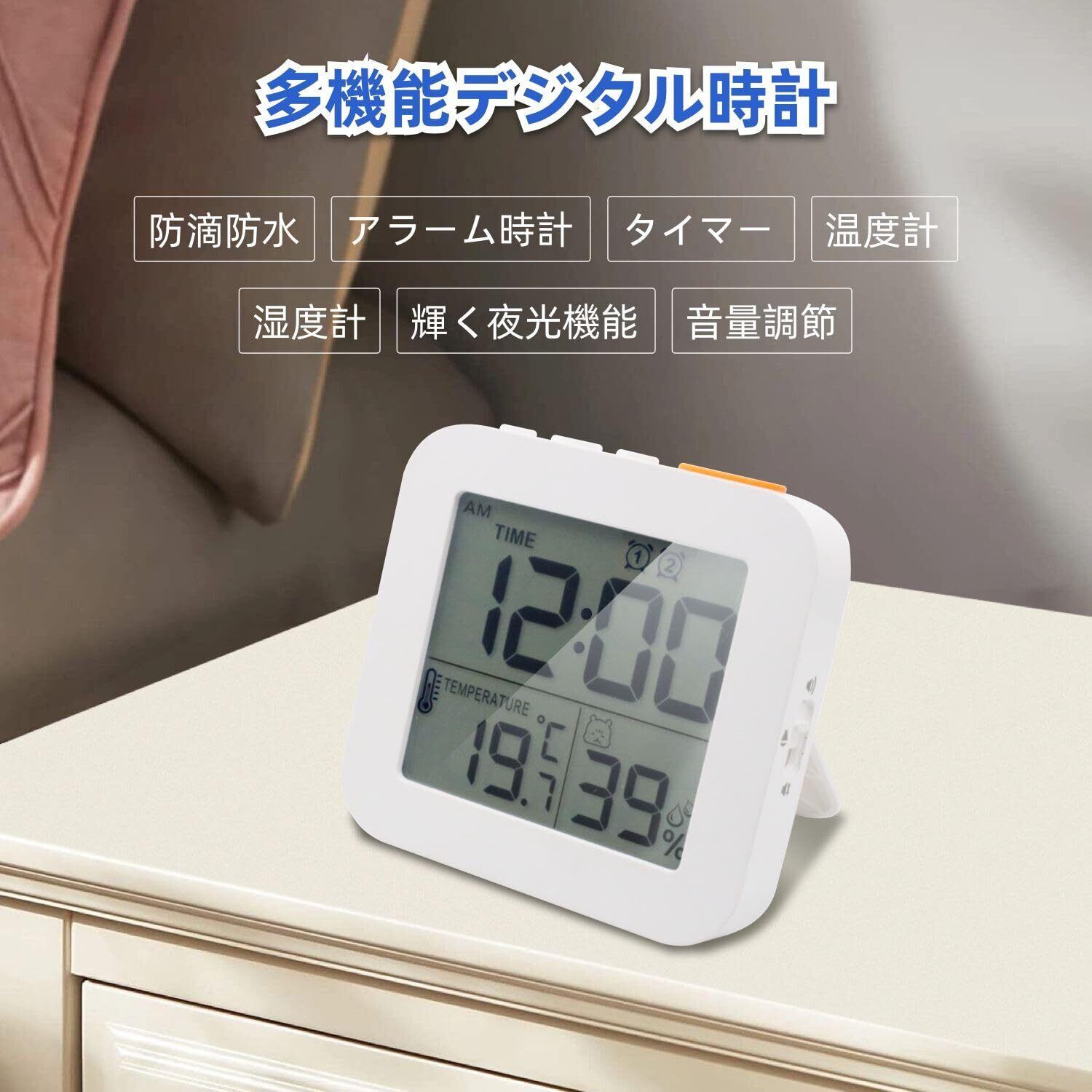 デジタル時計 防滴型防水 タイマー 温度計 湿度計 LCDディスプレイ 目覚まし時計 お風呂時計 壁掛け 卓上置き 浴室 バスルーム 洗面所 台所 部屋用 中庭 シャワー用(ホワイト)