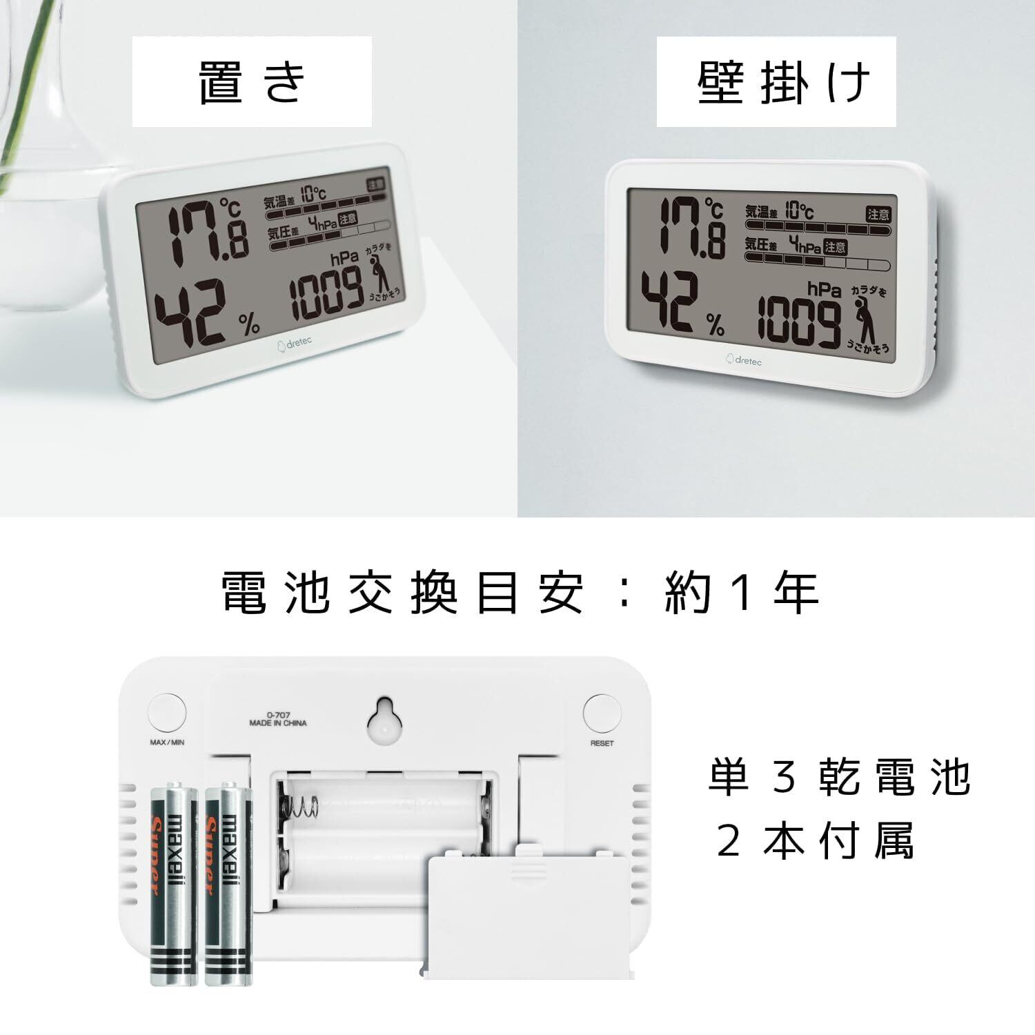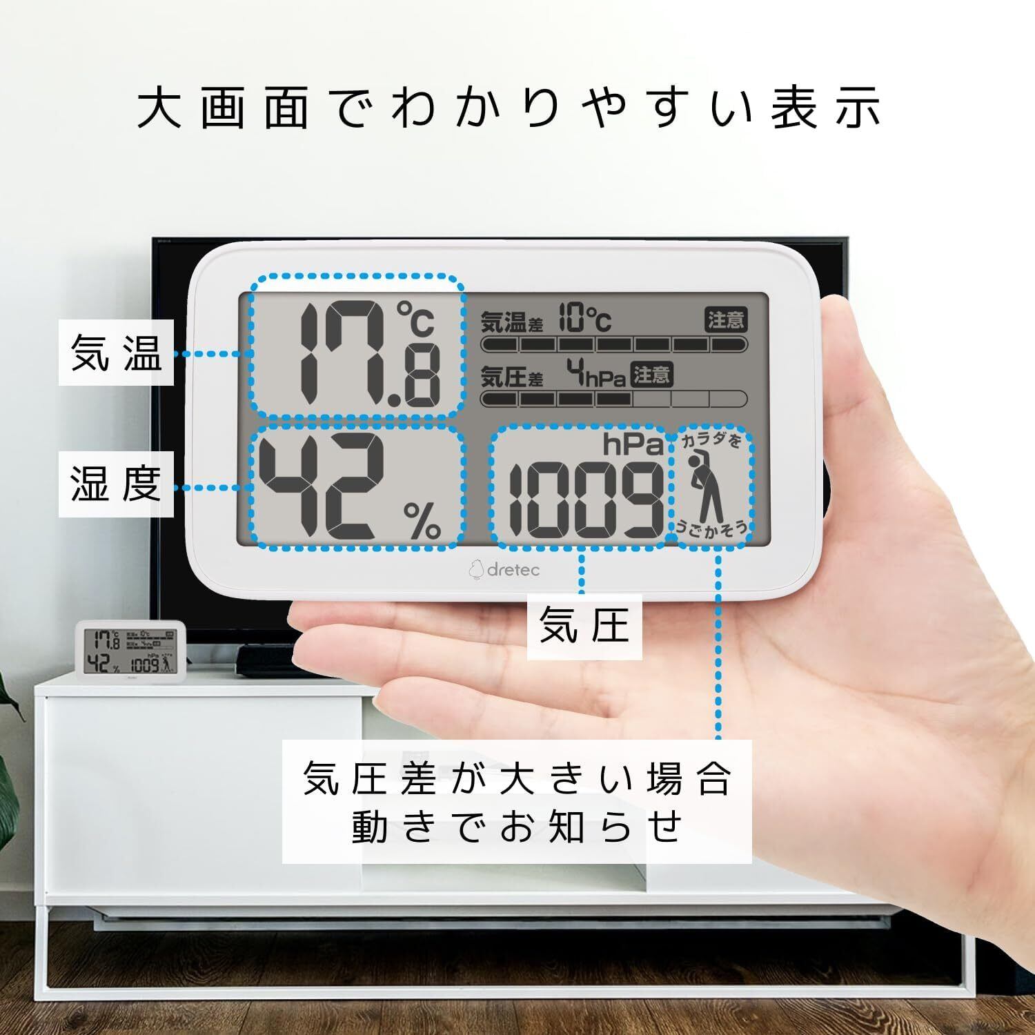 【在庫処分】ドリテック(dretec) 専門家監修 天気deミカタ 気圧計 動作確認用電池付き 気温 湿度 気圧 気象病 天気痛
