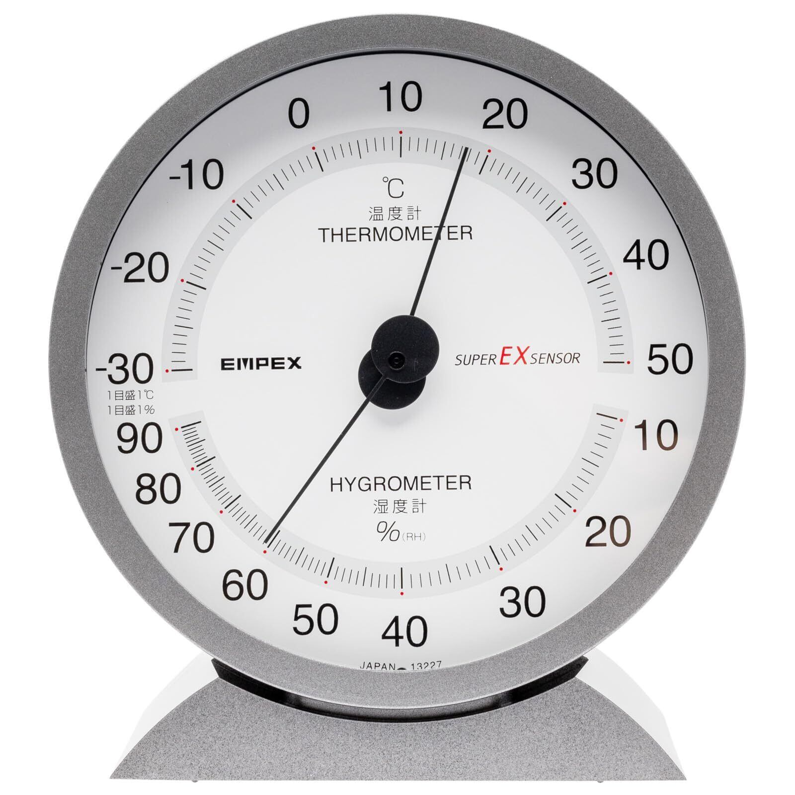 温度湿度計 スーパーEX 温度計 湿度計 アナログ 卓上型 壁掛け 日本製 メタリックグレー EX-2717 13.2x12.1x5cm