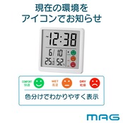 【2022最新】MAG(マグ) 温度計 湿度計 温度湿度計 デジタル 環境目安表示 快適 高湿 乾燥 時計表示 小型 小さい マグネット 磁石 置き掛け兼用 ホワイト ニコピタ TH-112A WH-Z ノア精密