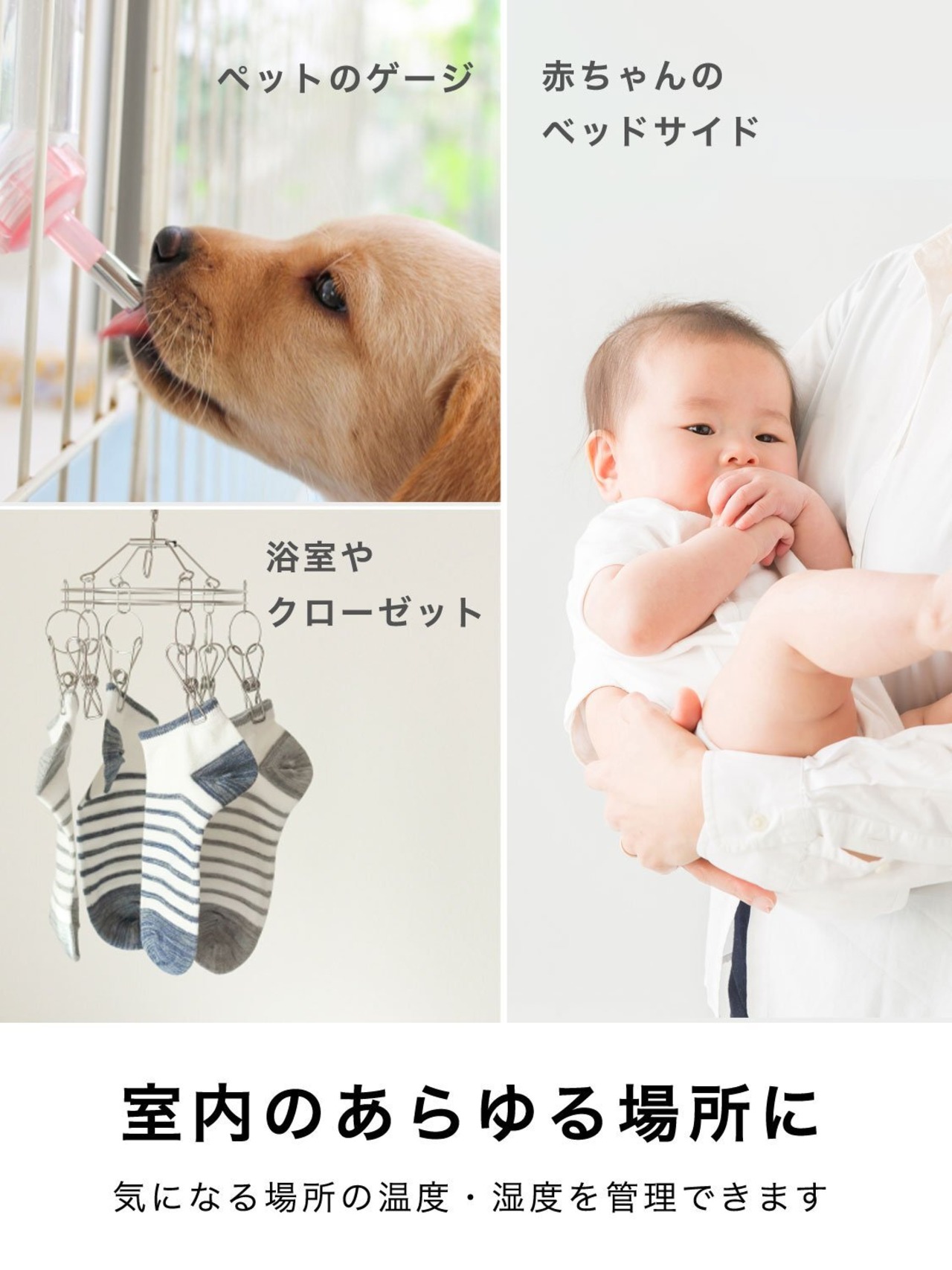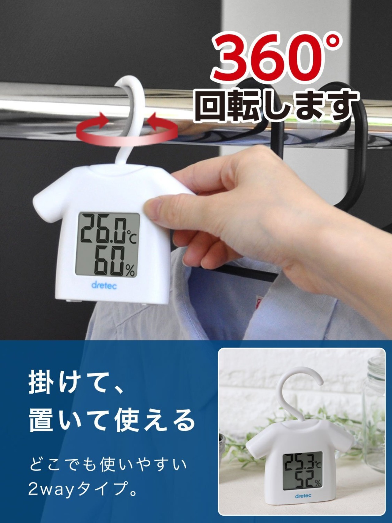 置ける、掛けられる温湿度計