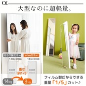 ofme 割れない軽量ミラー 日本製鏡面フィルム 全身鏡 割れない鏡 全身 フィルム 軽量 防災 地震対策 姿見 壁掛け 立て掛け ヨガ 筋トレ 賃貸 (高さ150×幅35cm)