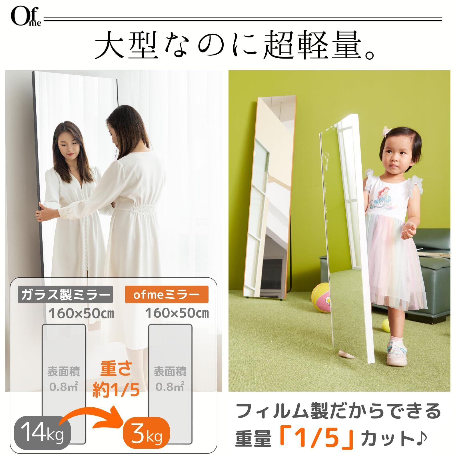 【新着商品】ofme 割れない軽量ミラー 日本製鏡面フィルム 全身鏡 割れない鏡 全身 フィルム 軽量 防災 地震対策 姿見 壁掛け 立て掛け ヨガ 筋トレ 賃貸 (高さ150×幅35cm)
