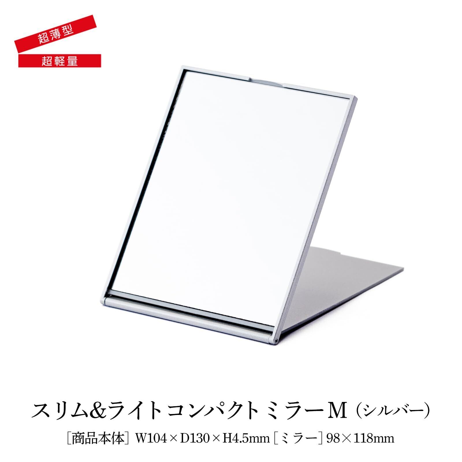 HORIUCHI MIRROR 軽量 ・薄型コンパクトミラー 手鏡 化粧鏡 Mサイズ シルバー クリスマス プレゼント