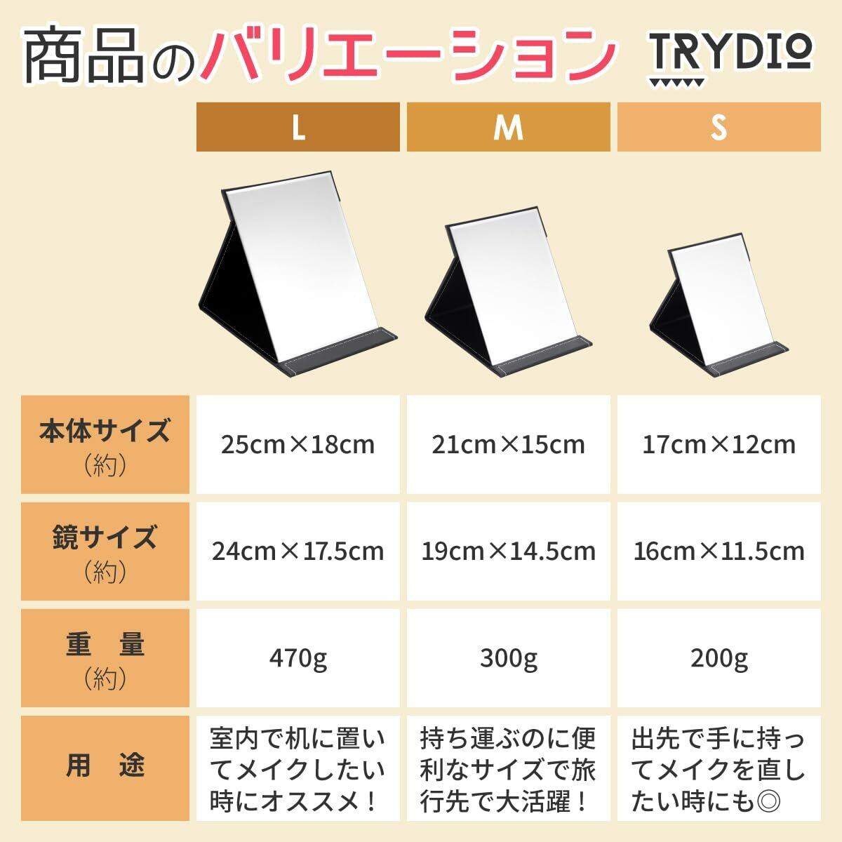 【セット内容】スタンドミラー×1点 【カラー】ブラック 【サイズ(約)】L:縦25cm×横18cm×厚さ1cm、M:縦21cm×横15cm×厚さ1cm、S:縦17cm×横12cm×厚さ1cm 【重量(約)】L:470g、M:300g、S:200g 【素材】本体:ミラー カバー:PUレザー