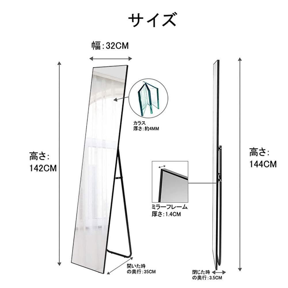 サイズ(W)幅32cm×(D)奥行35cm×(H)高さ142cm 折りたたみ時:D)3.5cm×144cm ミラー厚:4mm