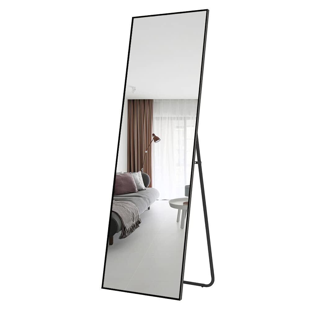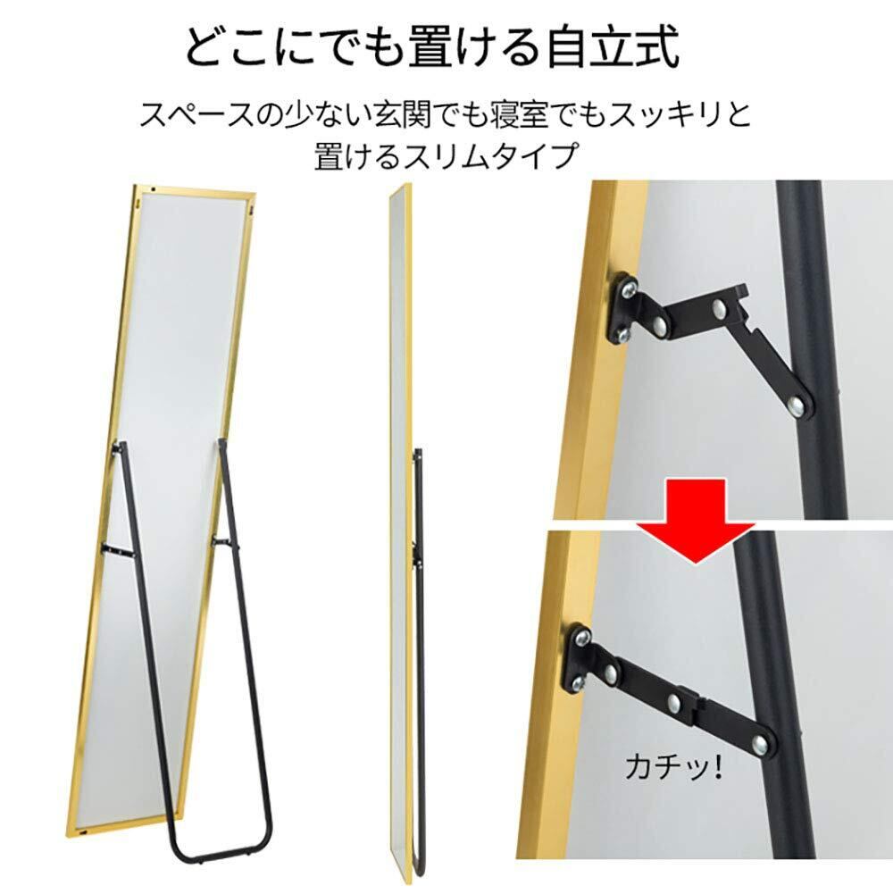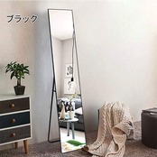 ミルオ君の鏡工房 全身鏡 姿見 スタンドミラー 壁掛けも対応 アルミフレーム 飛散防止 スタイリッシュ ウォールミラー インテリア 144x32cm (ブラック)