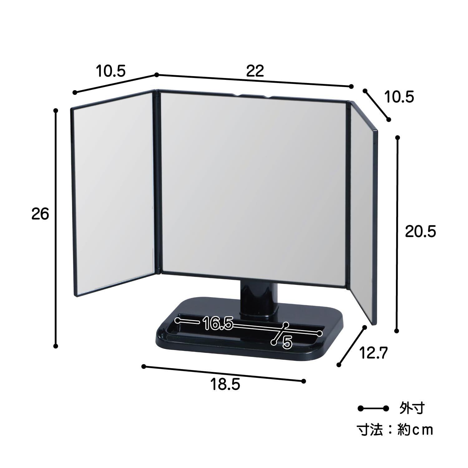 製品サイズ / 幅43×奥行12.7×高さ26cm(ミラーを広げた時)、幅22×奥行12.7×高さ26cm(ミラーを閉じた時)