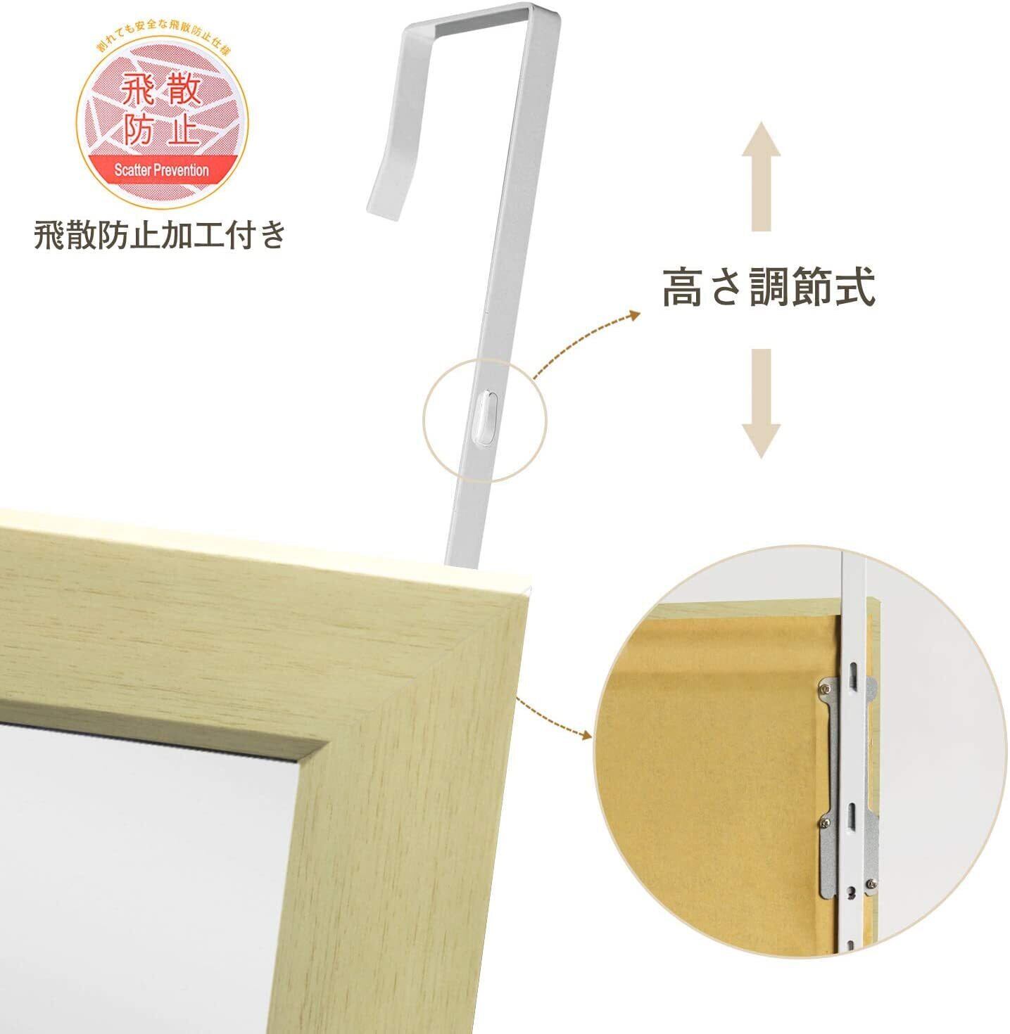 ミルオ君の鏡工房 ドア掛けミラー 全身鏡 全身ミラー 姿見 高さ調節式 壁掛け鏡 工具不要 飛散防止 HD鏡面 118x30cm ナチュラル