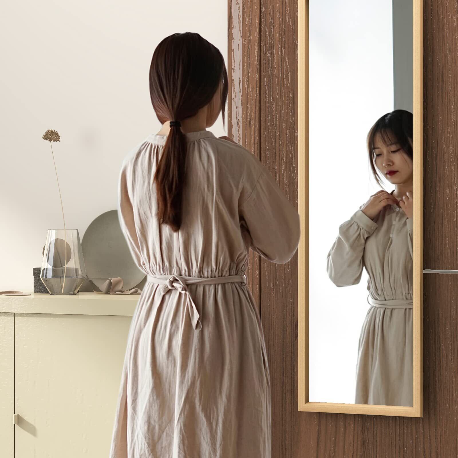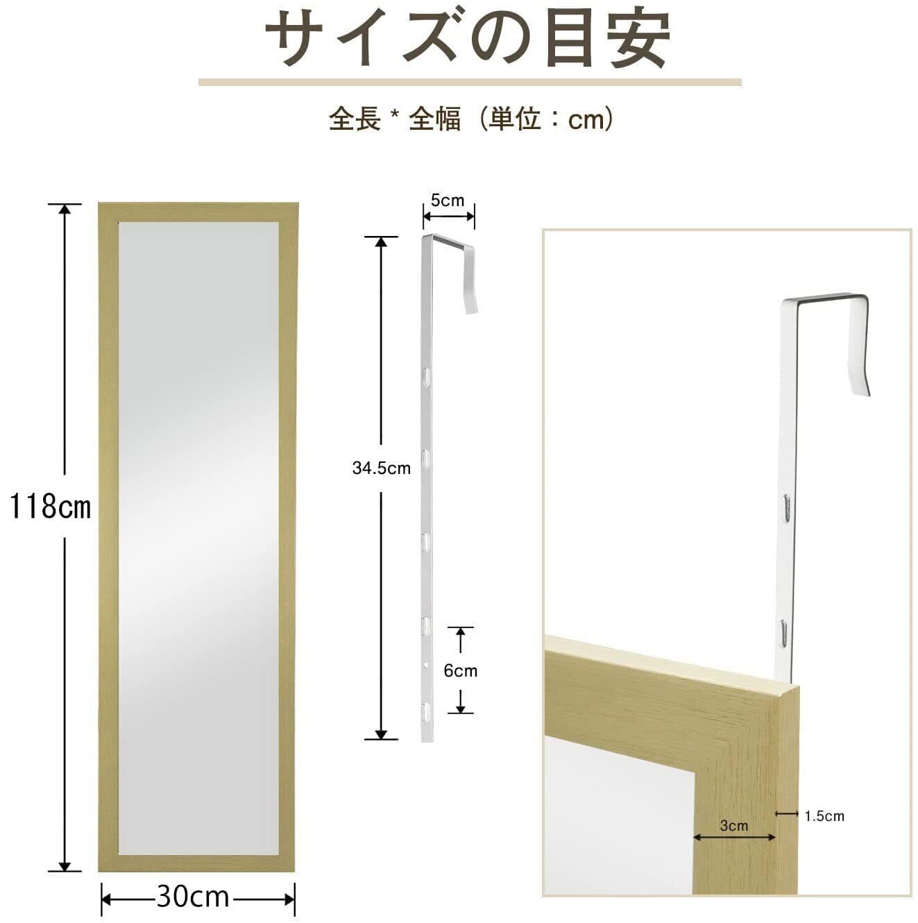 【2022最新】ミルオ君の鏡工房 ドア掛けミラー 全身鏡 全身ミラー 姿見 高さ調節式 壁掛け鏡 工具不要 飛散防止 HD鏡面 118x30cm ナチュラル