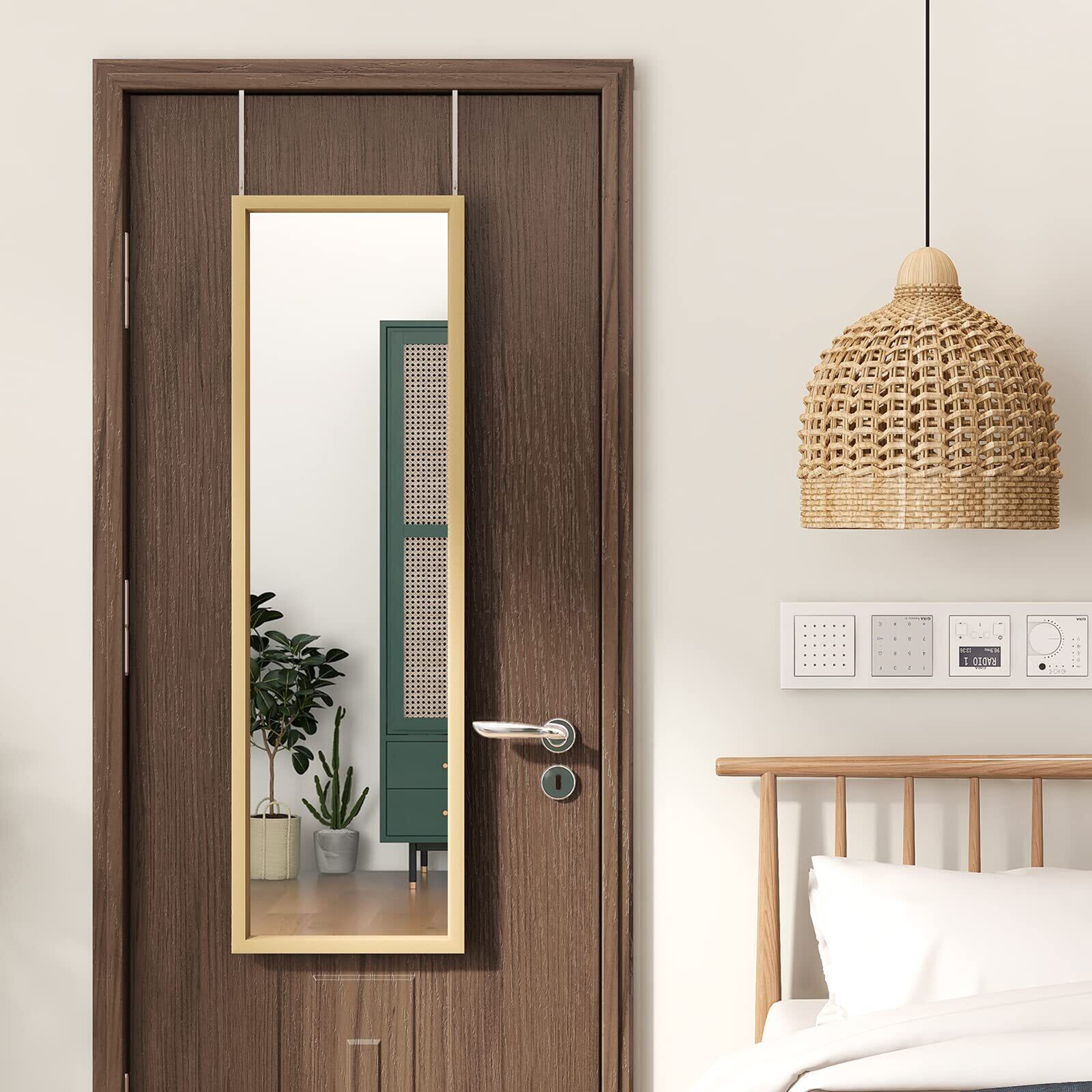 シンプル・おしゃれ・モダンなドア掛けミラー! 北欧・塩系インテリアに最適! スリム・省スペースですが、全身をきれいに映す吊り下げタイプの姿見ミラーです。