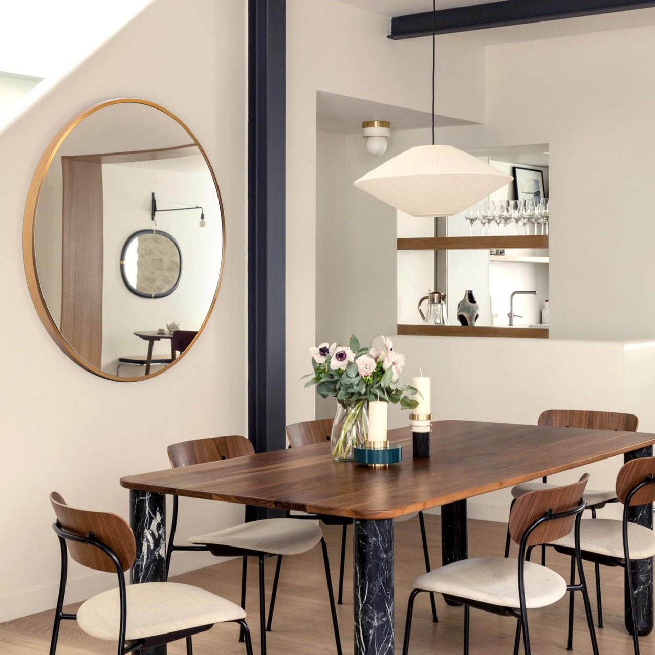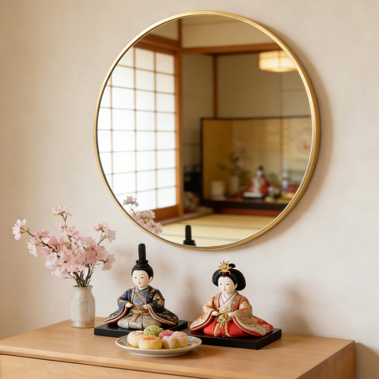 【省スペース な壁掛けタイプ】スタンドのない壁に掛けるタイプのミラーは、壁と一体となり場所をとらないので、とても省スペース 壁さえあればどこでも好きな場所に取り付けられます。