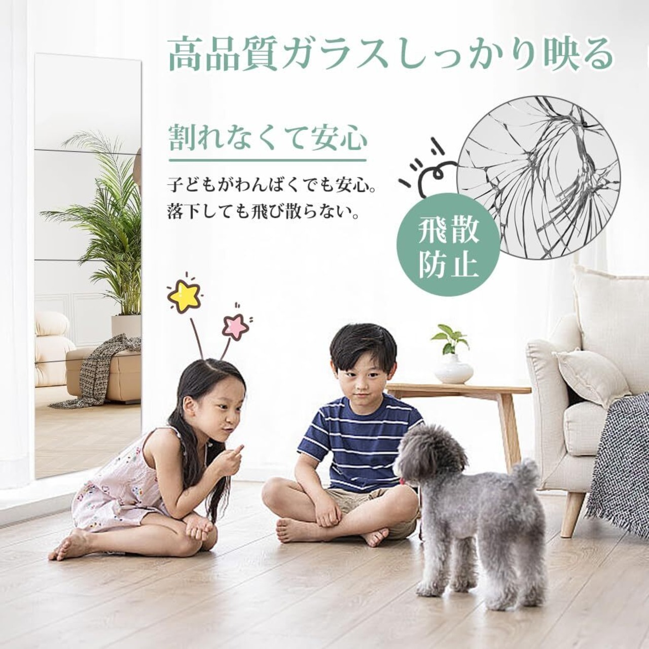 【省スペース】場所は取らず、本体は軽くて,取り付けはお一人でも楽々。玄関、クロゼットのドア、洗面所、浴室、脱衣室などいろんな場所で使えます。理想の何処でも貼れる割れない姿見鏡です。貼るタイプの鏡で日常の清掃も便利です。
