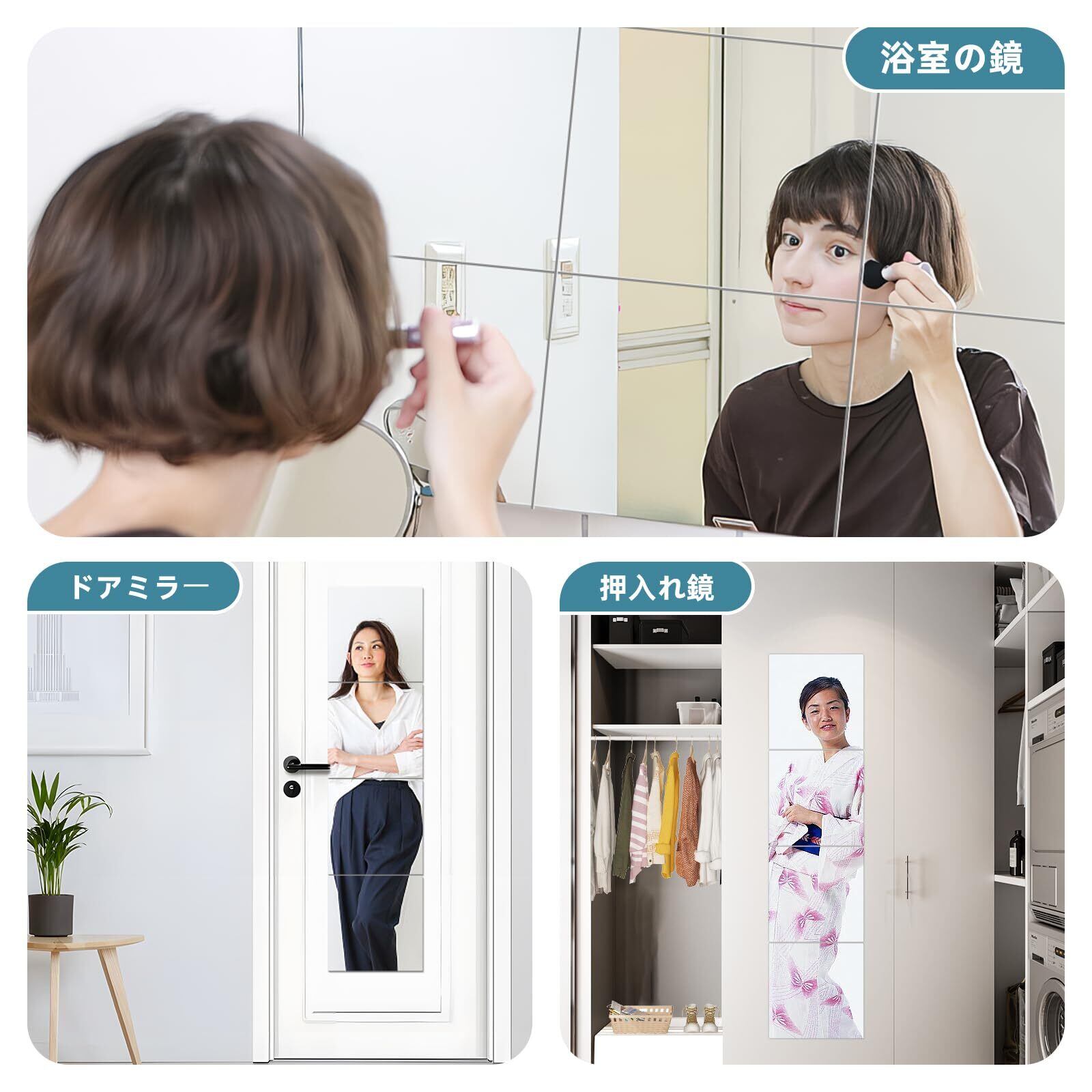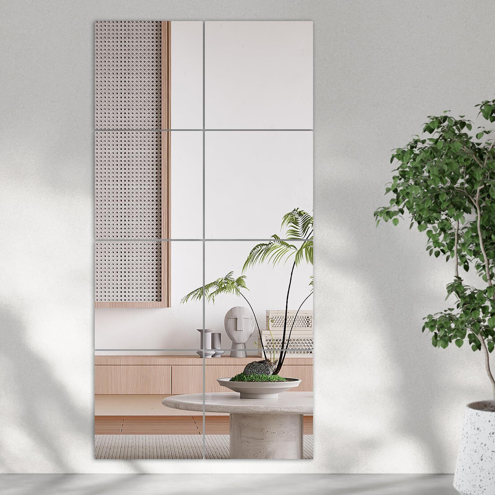 8枚セット・貼る 全身 鏡 ・30cm×30cm どこでも貼れる割れない鏡 壁掛け 姿見鏡 アクリル ミラー 風呂 浴室用 DIY 自由に組立て可能 穴あけ不要 軽量