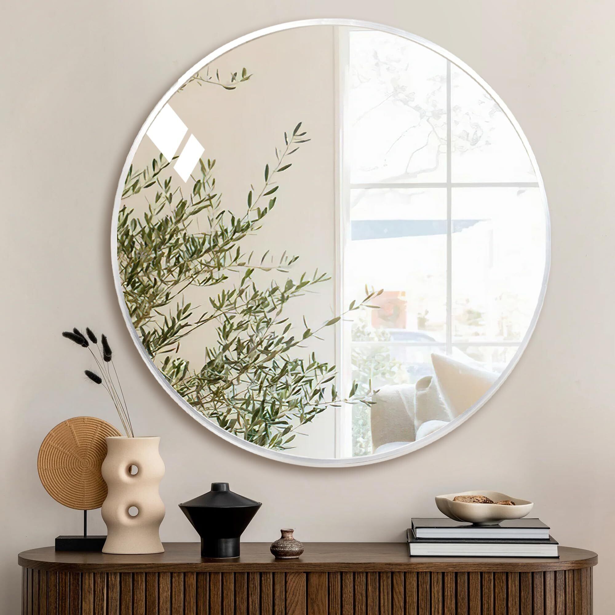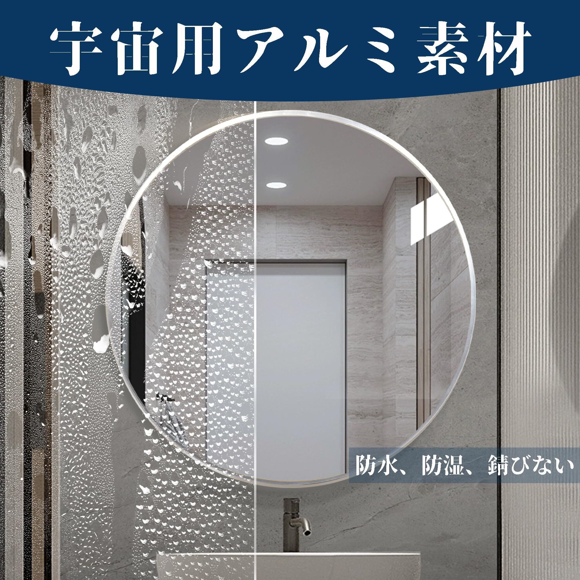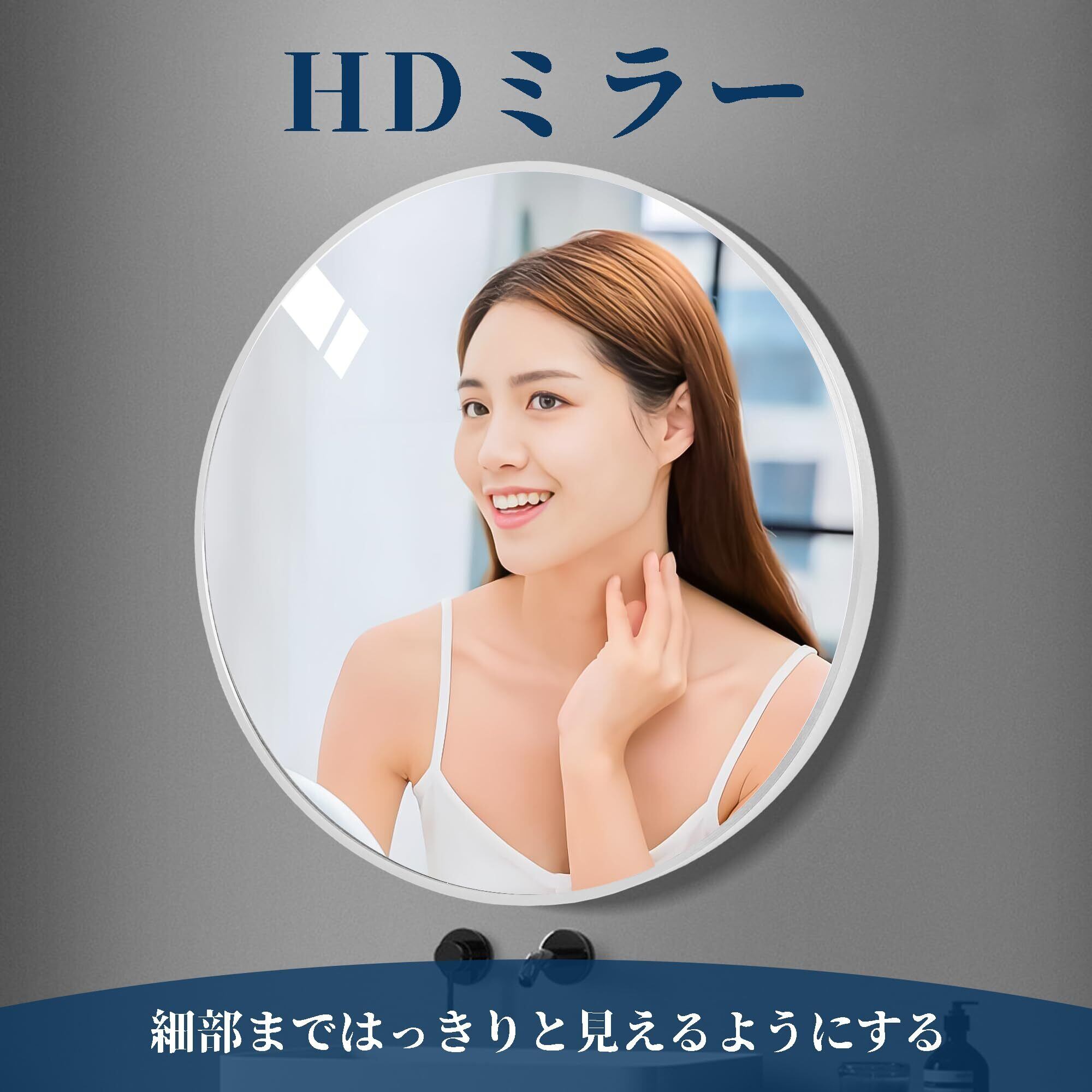 【おしゃれなフレームデザイン】丸い鏡の裏は鉛と銅を含まないアルミフレーム素材を使用し、バスルームのような湿度の高い環境でも使用できます。フレームの設計は十分に堅牢であり、ミラーが破損したり損傷を受けたりすることを防ぎ、偶発的な衝突時には緩衝材として機能します。バスルーム、玄関、ドレッサー、リビングルームなど、様々な場所で使用できます。