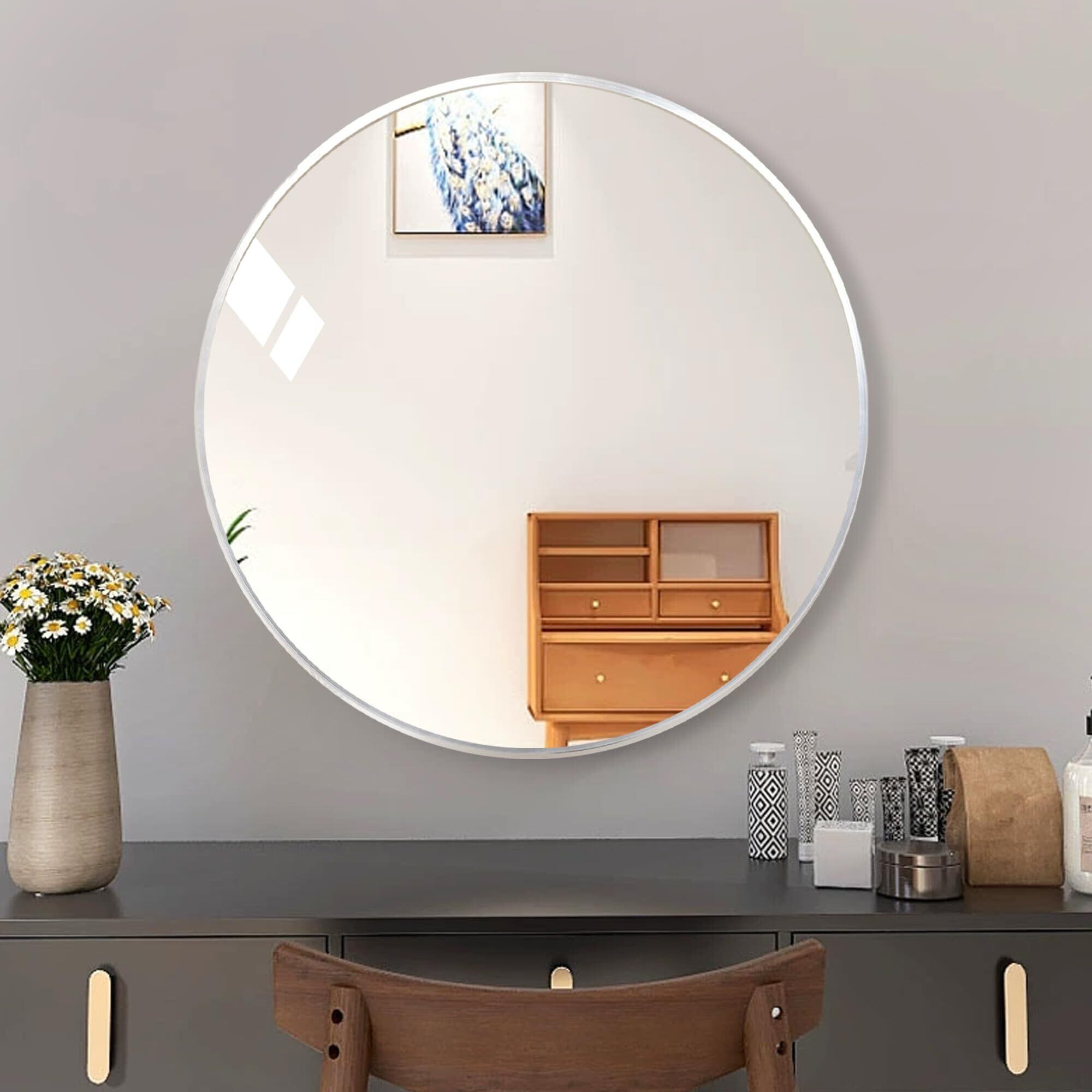 壁掛け鏡 丸 円形ミラー 壁掛けミラー バスルーム鏡 ウォールミラー 金属フレーム 化粧鏡 玄関 洗面 トイレ (シルバー 直径50cm)