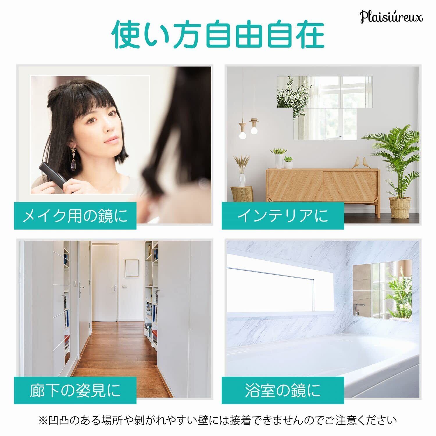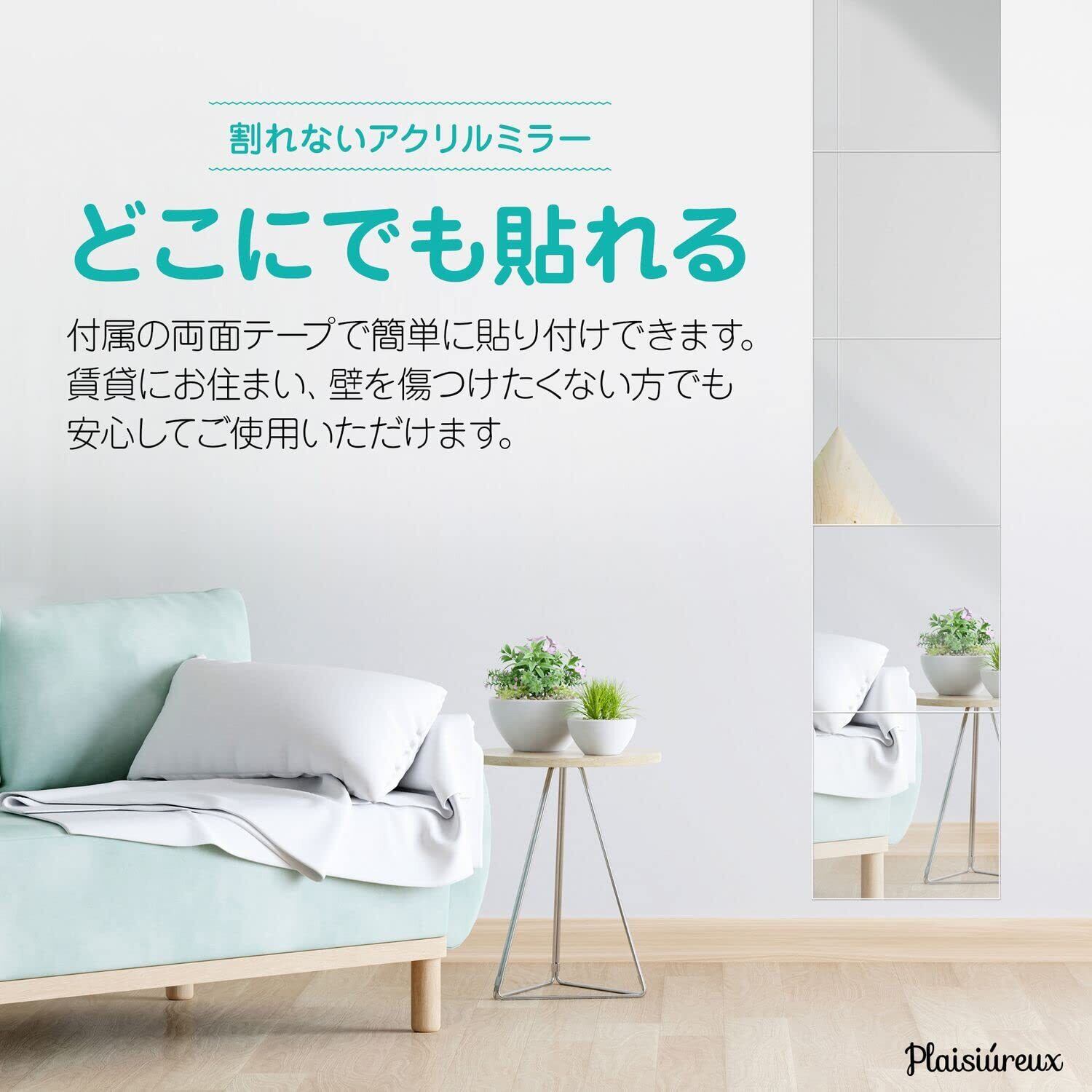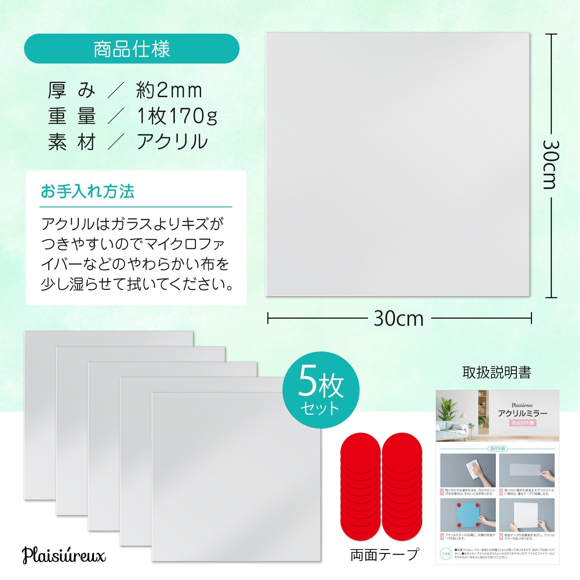 【商品仕様】○サイズ:縦横30cm、厚み約2cm ○セット内容:アクリル鏡5枚、両面テープ 取扱説明書 ○重量:1枚170g ○素材:アクリル ○ブランド:Plaisiureux