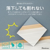 【アクリル製/割れない鏡】落下しても割れることがないアクリル製の鏡セット。リビングや寝室などお好きな場所に簡単に貼り付けできます。落下しても割れないので、お子さまやペットがいらっしゃるご家庭でも安心。災害時に落下しても鏡の破片が飛び散ることはありません。