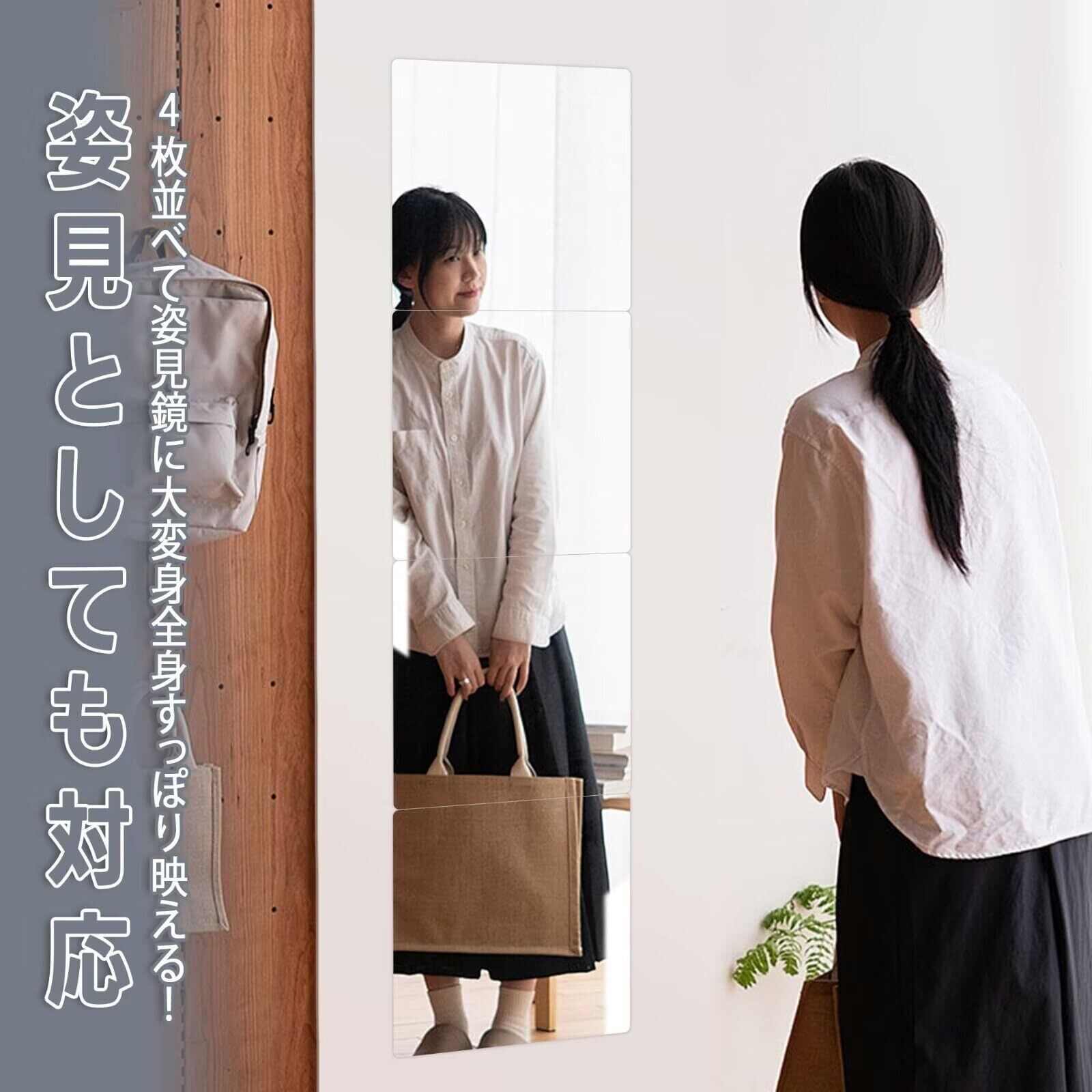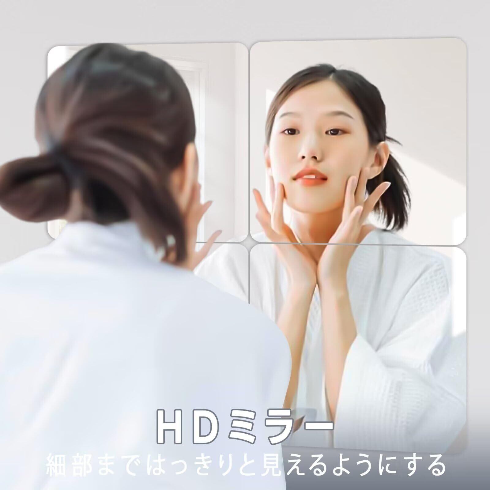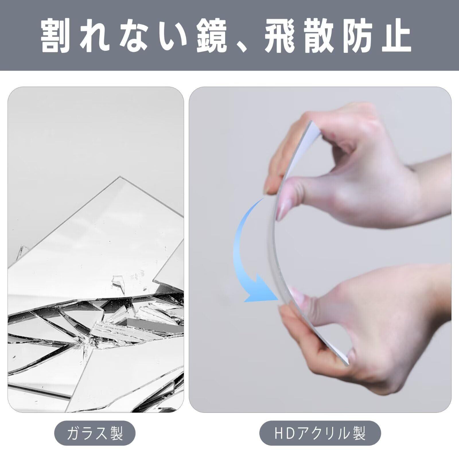 【取付簡単貼る鏡】付属の強力な両面テープを利用して、直接壁に貼り付けることができます、工具も必要なく。女性でも簡単に設置できます。 滑らかな壁、ラテックスの壁、ガラスの壁や木製ドアに設置OK。