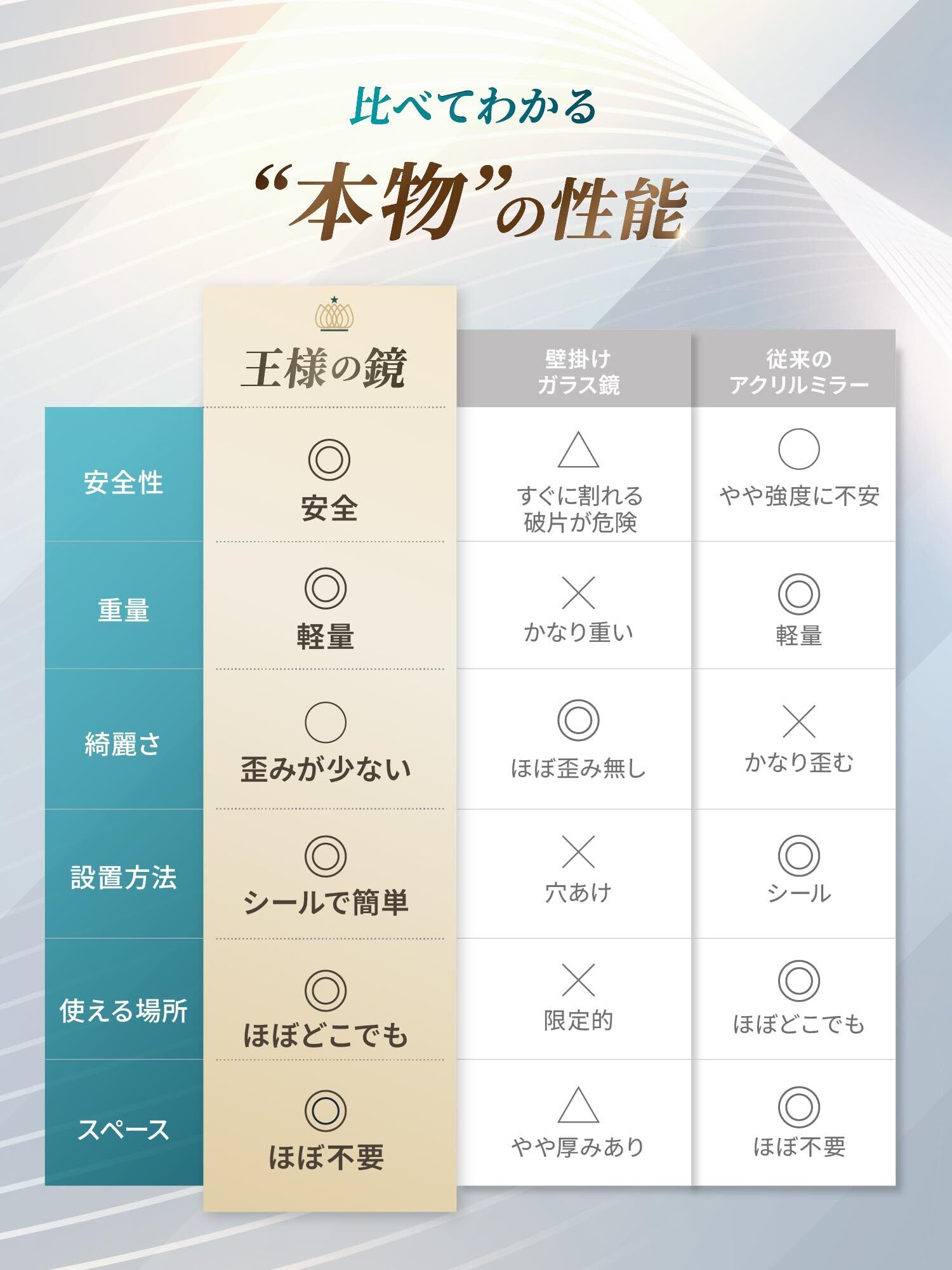 【アクリルミラーで怪我ゼロへ】飛散防止、軽量設計の為、万が一落下しても鏡に比べ怪我のリスクが低下します。地震など災害時にも割れる心配が無く、小さなお子様やペットの安全対策としてもオススメです。