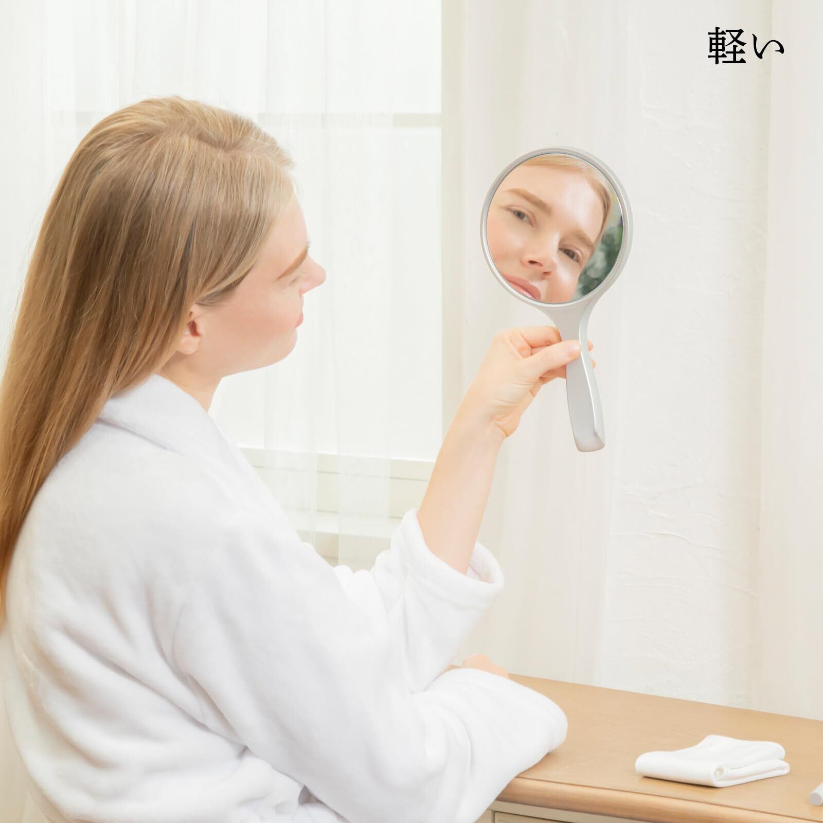 【メイクがしやすい】軽くて割れないので持ち運びに便利です。メイクがしやすいハンドミラーです。全体サイズ:約140mm x263mm x 10mm 重量:約150g
